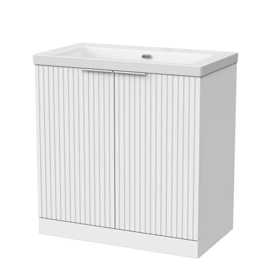 nuie Lux Flume 800mm 2-Door Floor Standing Unit with Contemporary Fireclay Basin - 0 Tap Holes - Matt White