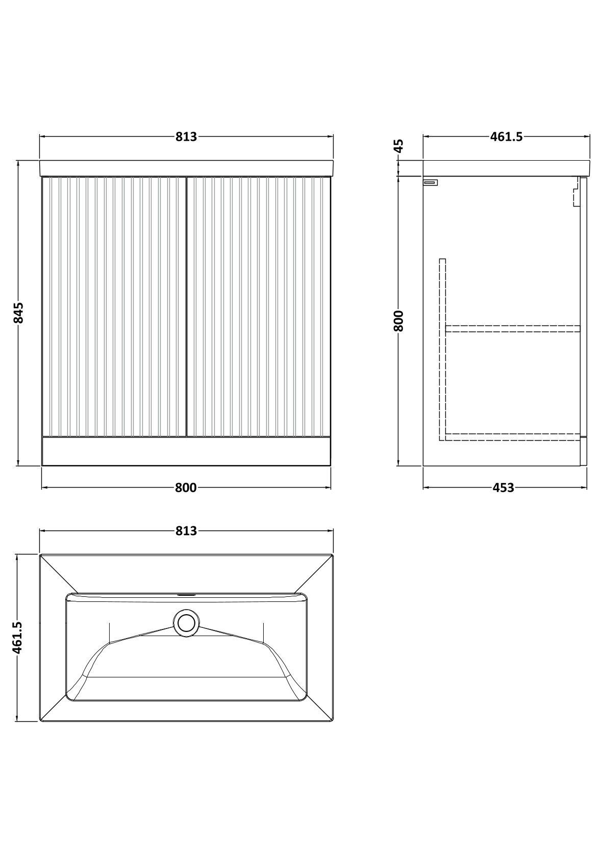 Flume 800mm 2-Door Floor Standing Unit with Contemporary Fireclay Basin - 0 Tap Holes