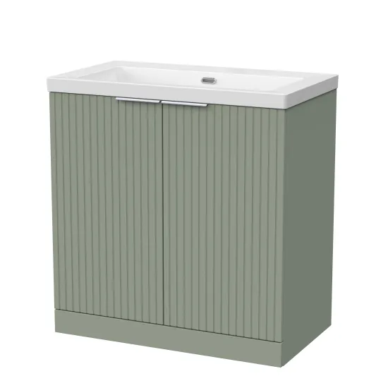 nuie Lux Flume 800mm 2-Door Floor Standing Unit with Contemporary Fireclay Basin - 0 Tap Holes - Fern Green