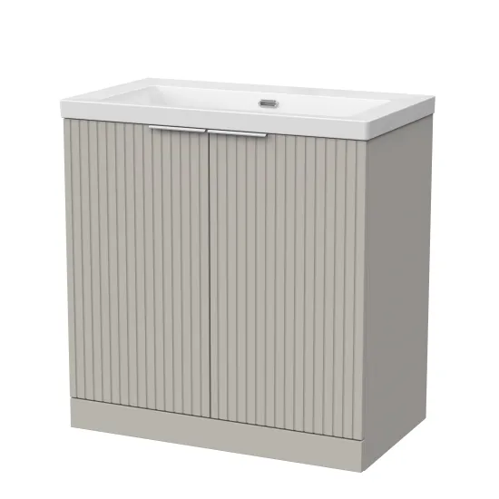 nuie Lux Flume 800mm 2-Door Floor Standing Unit with Contemporary Fireclay Basin - 0 Tap Holes - Pebble Grey
