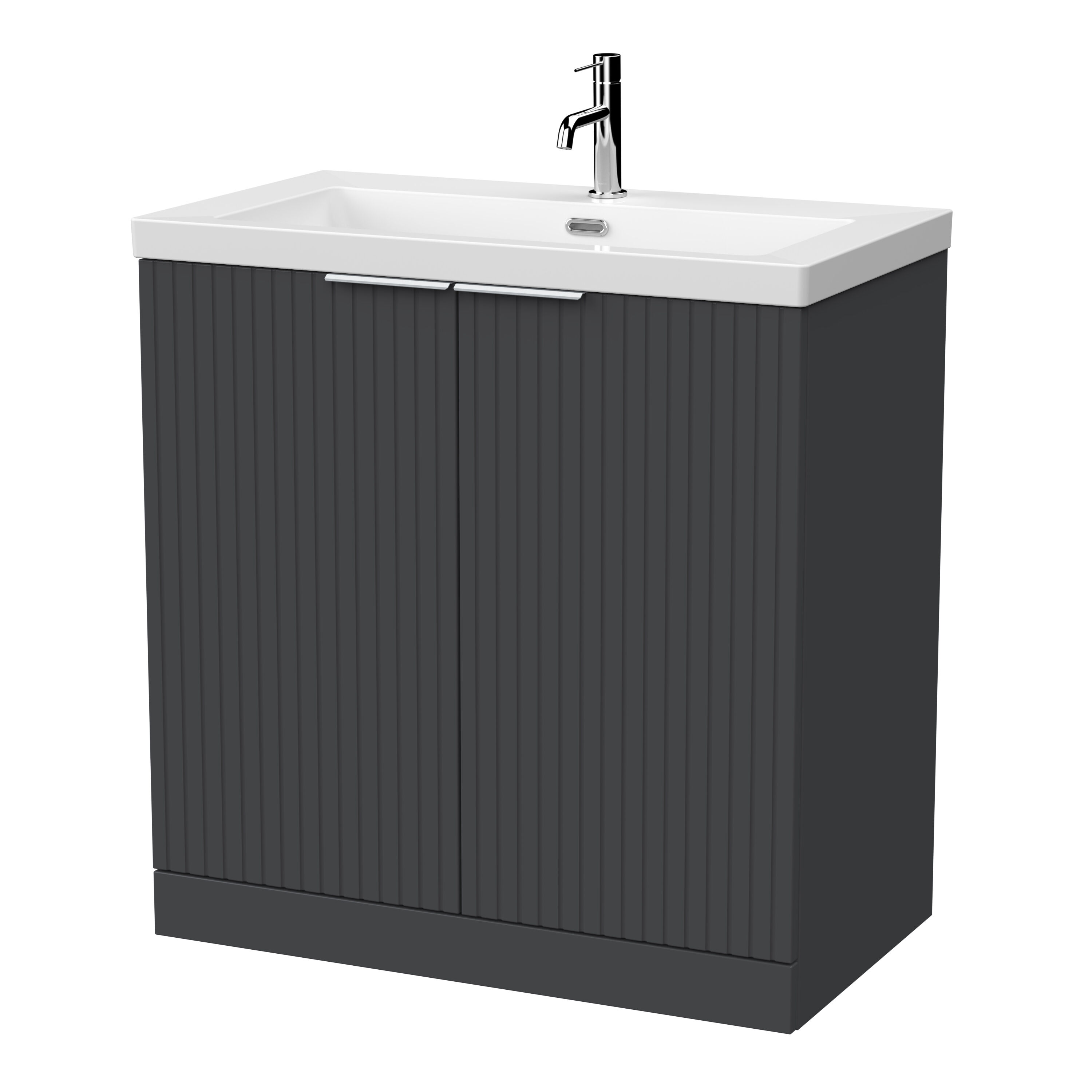Flume 800mm 2-Door Floor Standing Unit with Contemporary Fireclay Basin - 1 Tap Hole