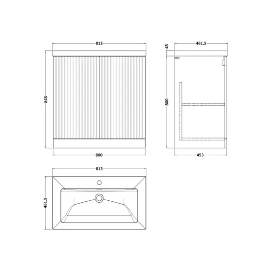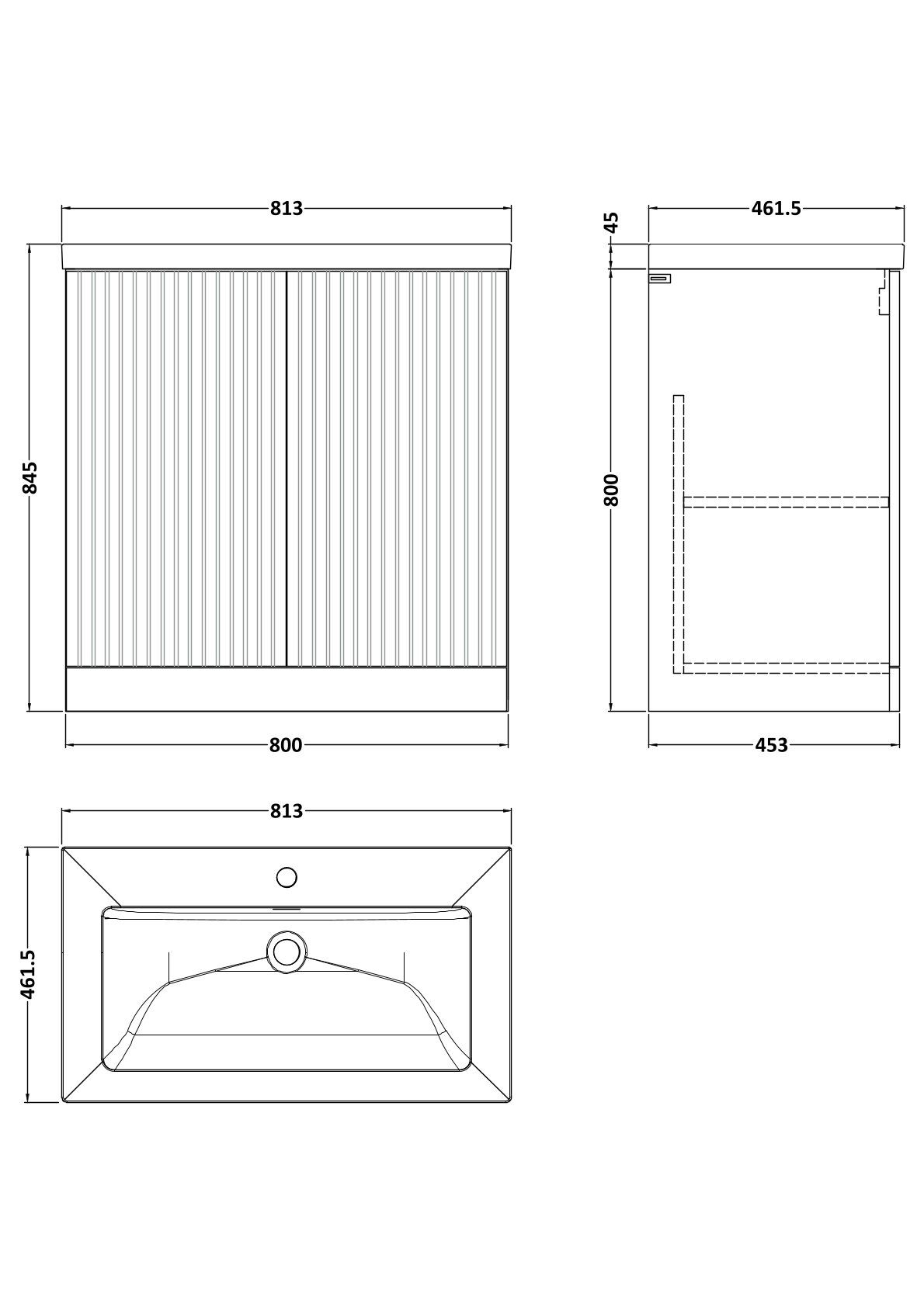Flume 800mm 2-Door Floor Standing Unit with Contemporary Fireclay Basin - 1 Tap Hole
