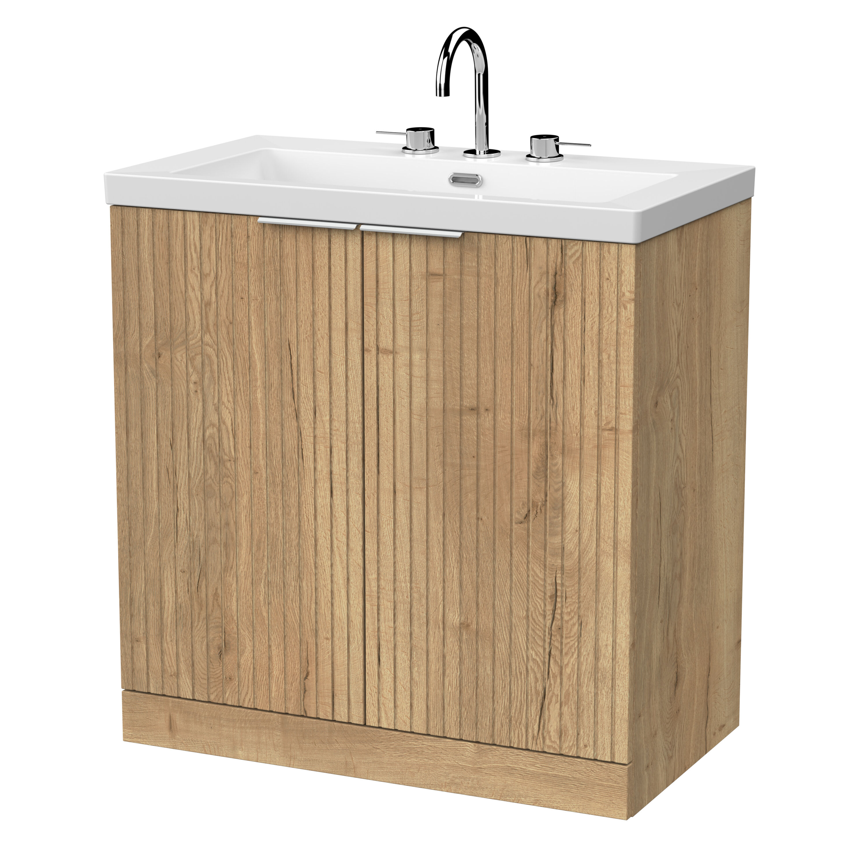 nuie Lux Flume 800mm 2-Door Floor Standing Unit with Contemporary Fireclay Basin - 3 Tap Holes - Autumn Oak