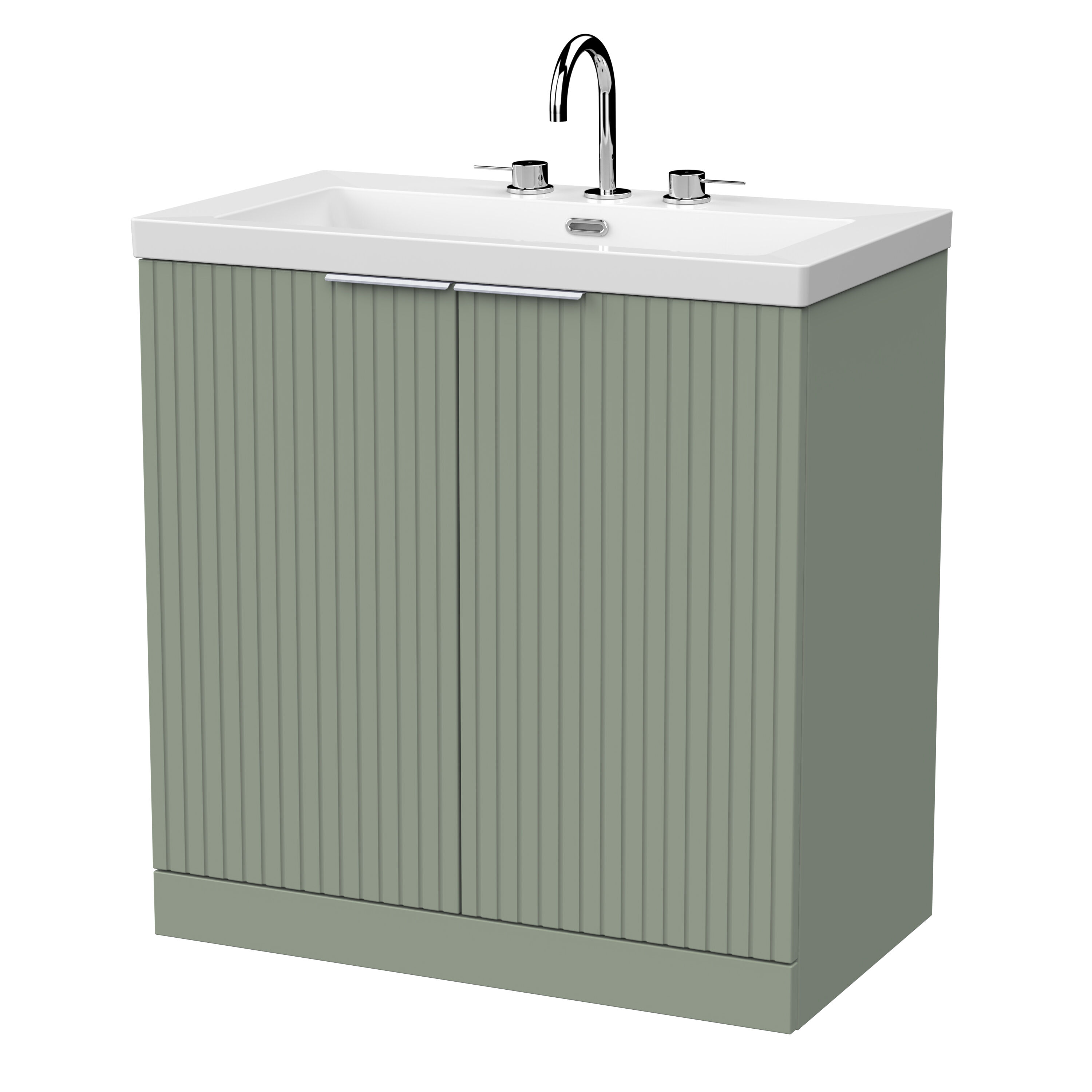 nuie Lux Flume 800mm 2-Door Floor Standing Unit with Contemporary Fireclay Basin - 3 Tap Holes - Fern Green