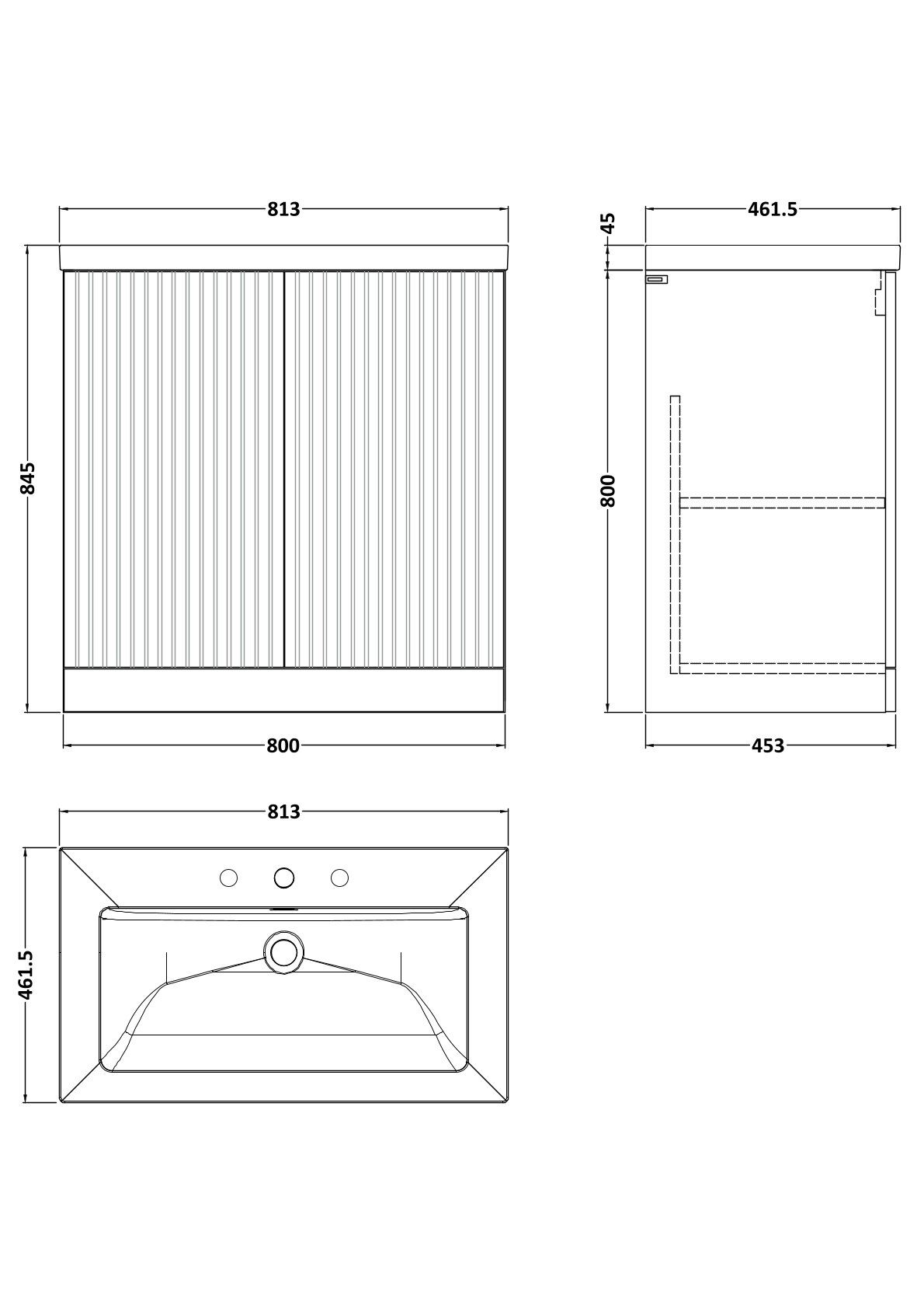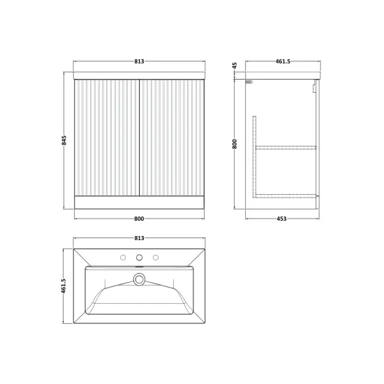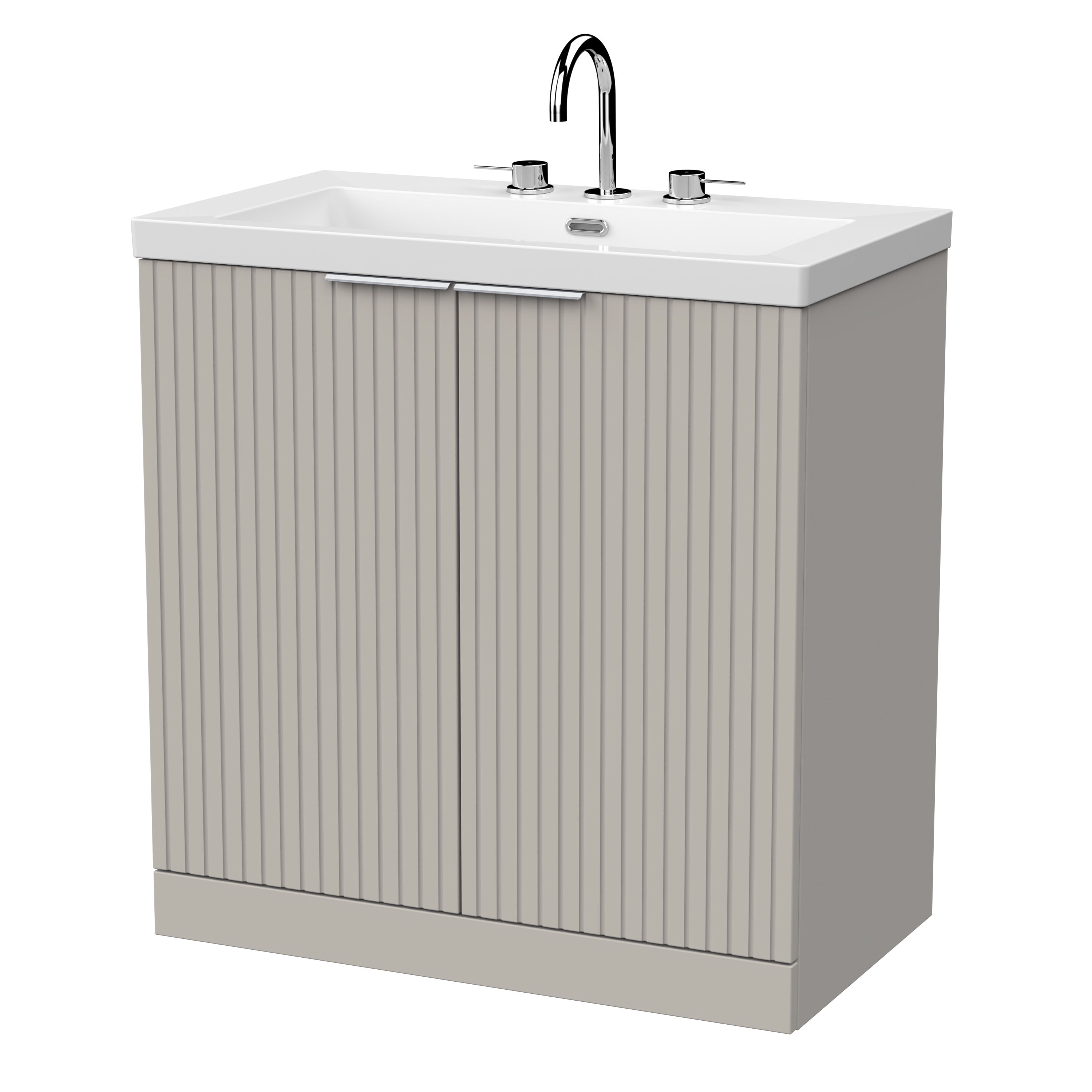 Flume 800mm 2-Door Floor Standing Unit with Contemporary Fireclay Basin - 3 Tap Holes