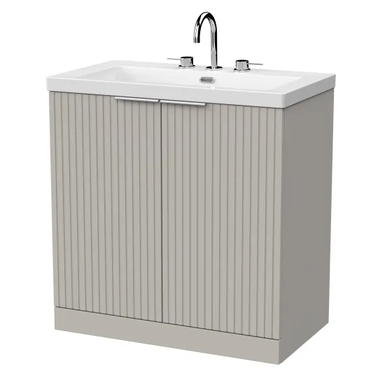nuie Lux Flume 800mm 2-Door Floor Standing Unit with Contemporary Fireclay Basin - 3 Tap Holes - Pebble Grey