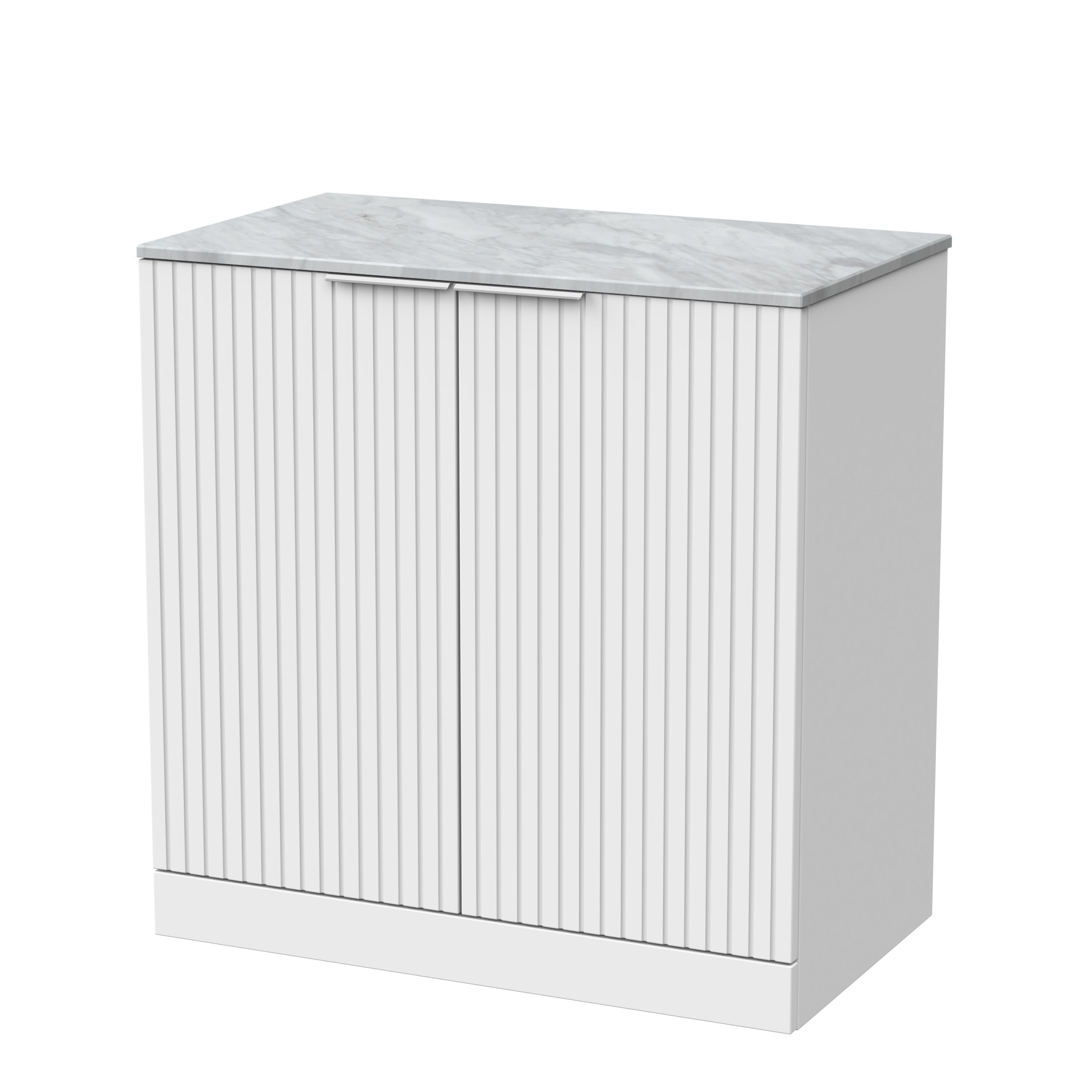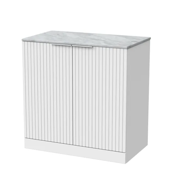 nuie Lux Flume 800mm 2-Door Floor Standing Unit with Grey Marble Top - Matt White