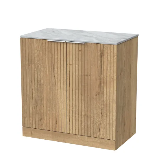 nuie Lux Flume 800mm 2-Door Floor Standing Unit with Grey Marble Top - Autumn Oak
