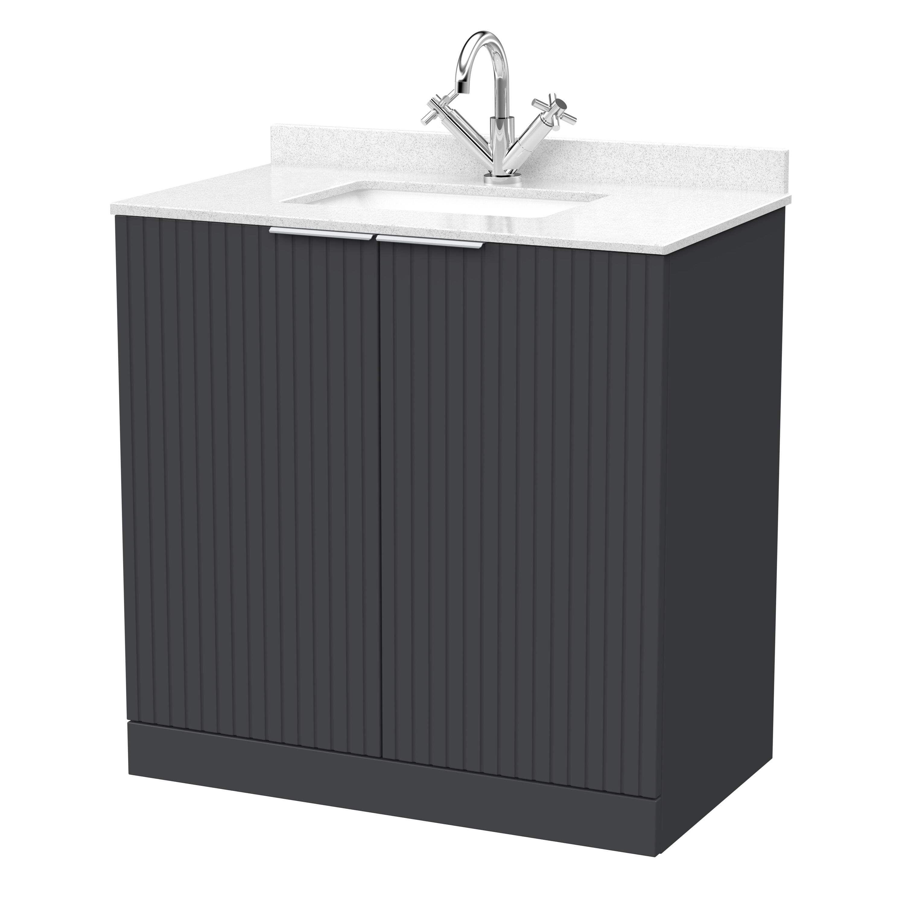 nuie Lux Flume 800mm 2-Door Floor Standing Unit with Single Bowl Marble Top 1 Tap Hole in White - Soft Black