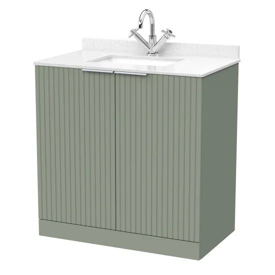 nuie Lux Flume 800mm 2-Door Floor Standing Unit with Single Bowl Marble Top 1 Tap Hole in White - Fern Green
