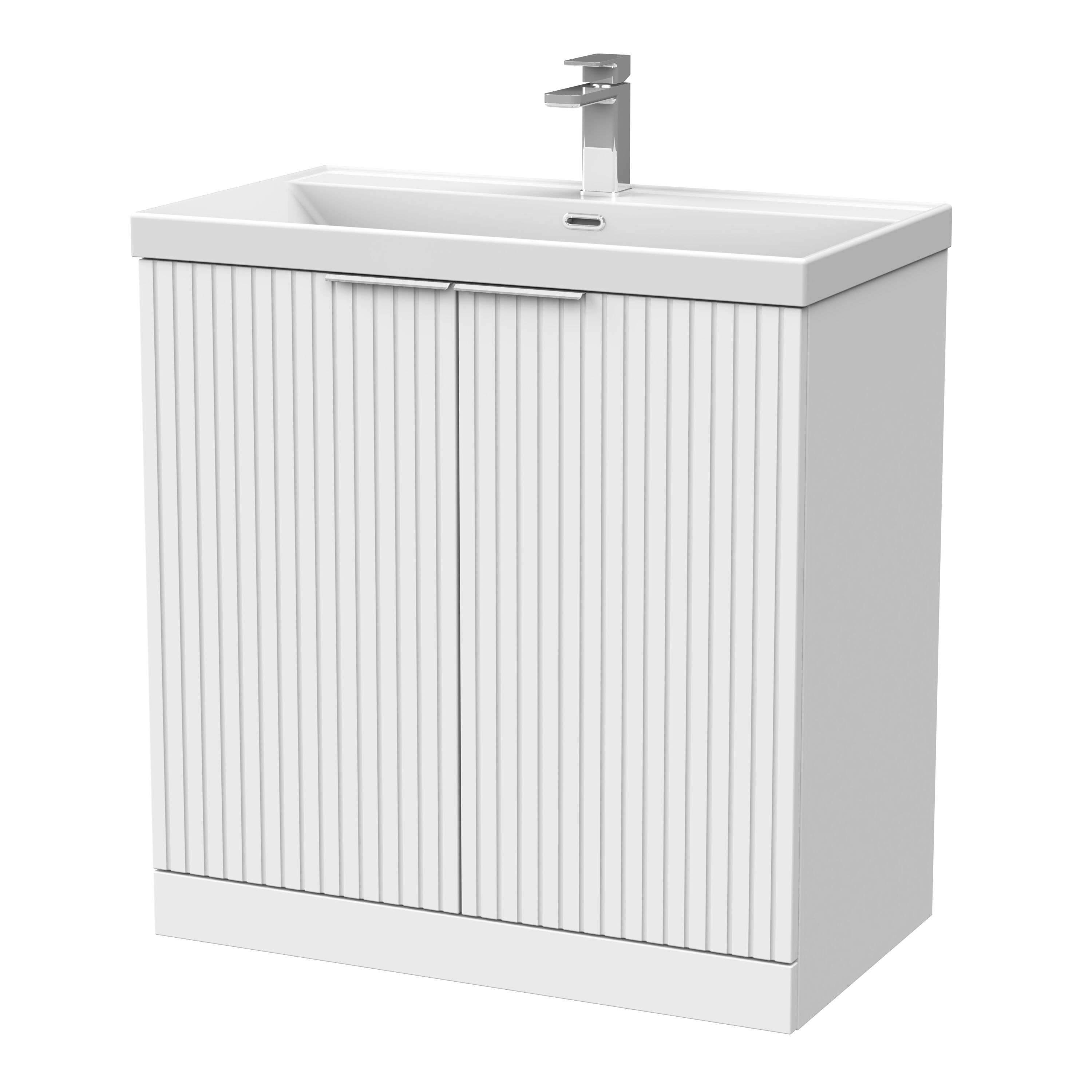 nuie Lux Flume 800mm 2-Door Floor Standing Unit with Thin-Edge Basin - 1 Tap Hole - Matt White
