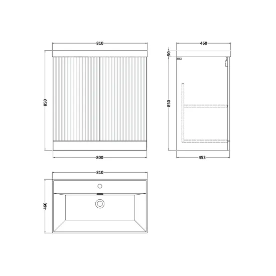 Flume 800mm 2-Door Floor Standing Unit with Thin-Edge Basin - 1 Tap Hole