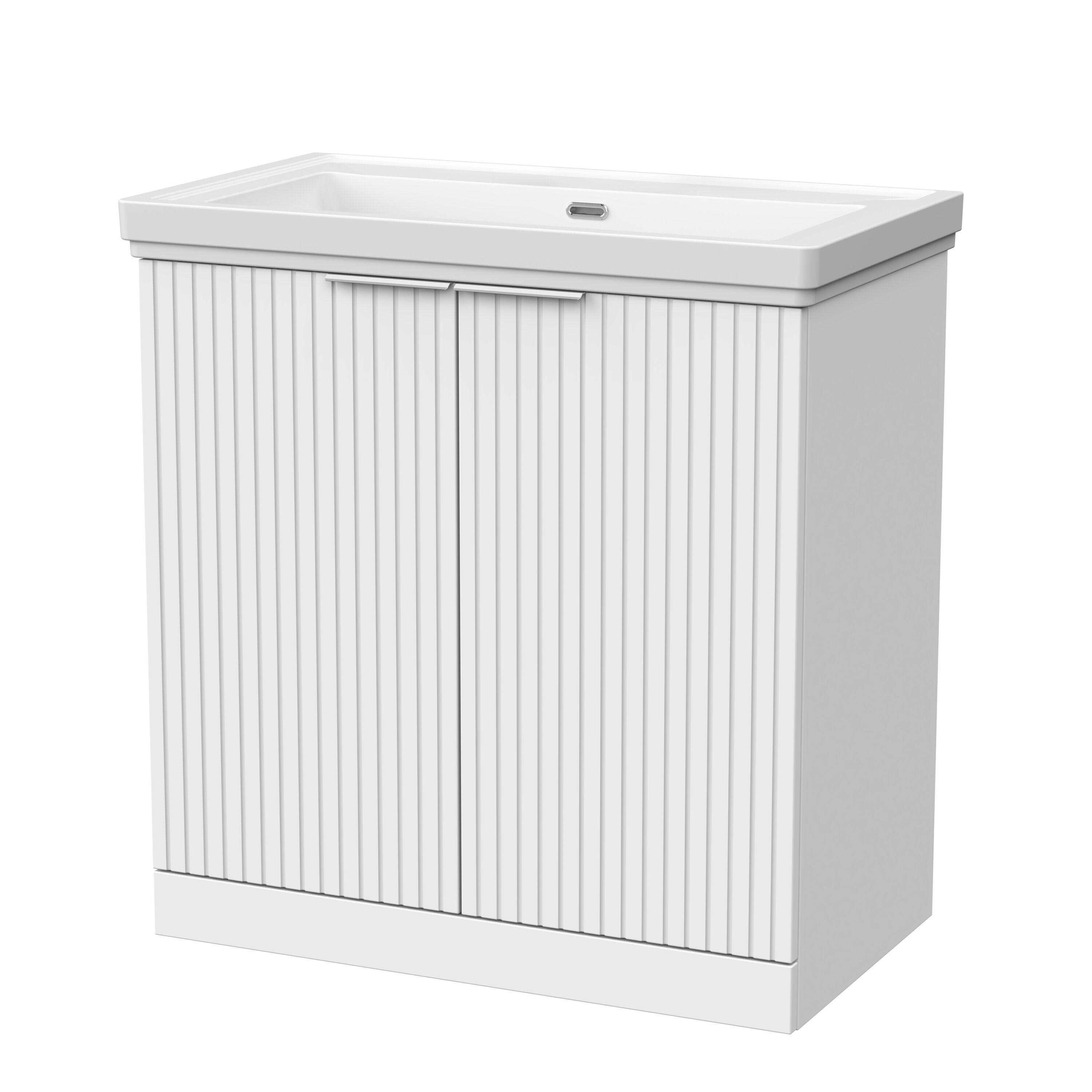 nuie Lux Flume 800mm 2-Door Floor Standing Unit with Traditional Fireclay Basin - 0 Tap Holes - Matt White