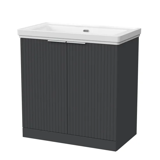 nuie Lux Flume 800mm 2-Door Floor Standing Unit with Traditional Fireclay Basin - 0 Tap Holes - Soft Black