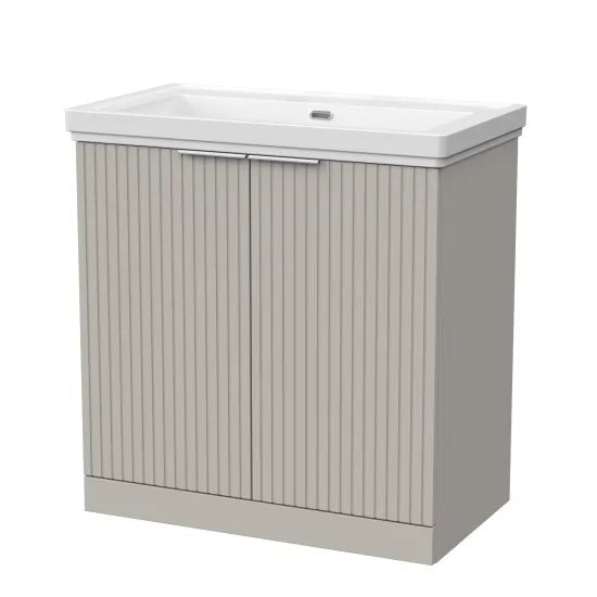 nuie Lux Flume 800mm 2-Door Floor Standing Unit with Traditional Fireclay Basin - 0 Tap Holes - Pebble Grey