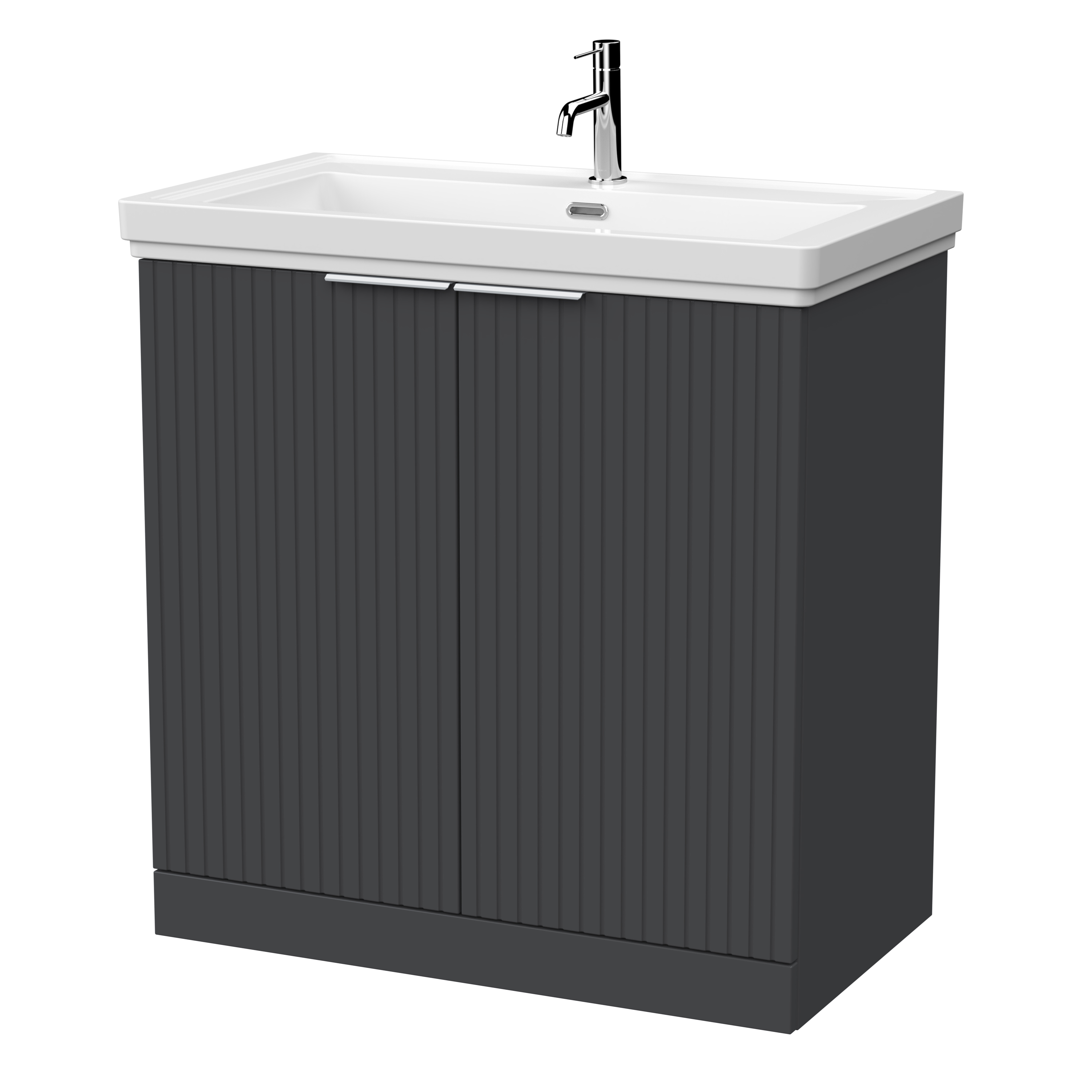 nuie Lux Flume 800mm 2-Door Floor Standing Unit with Traditional Fireclay Basin - 1 Tap Hole - Soft Black