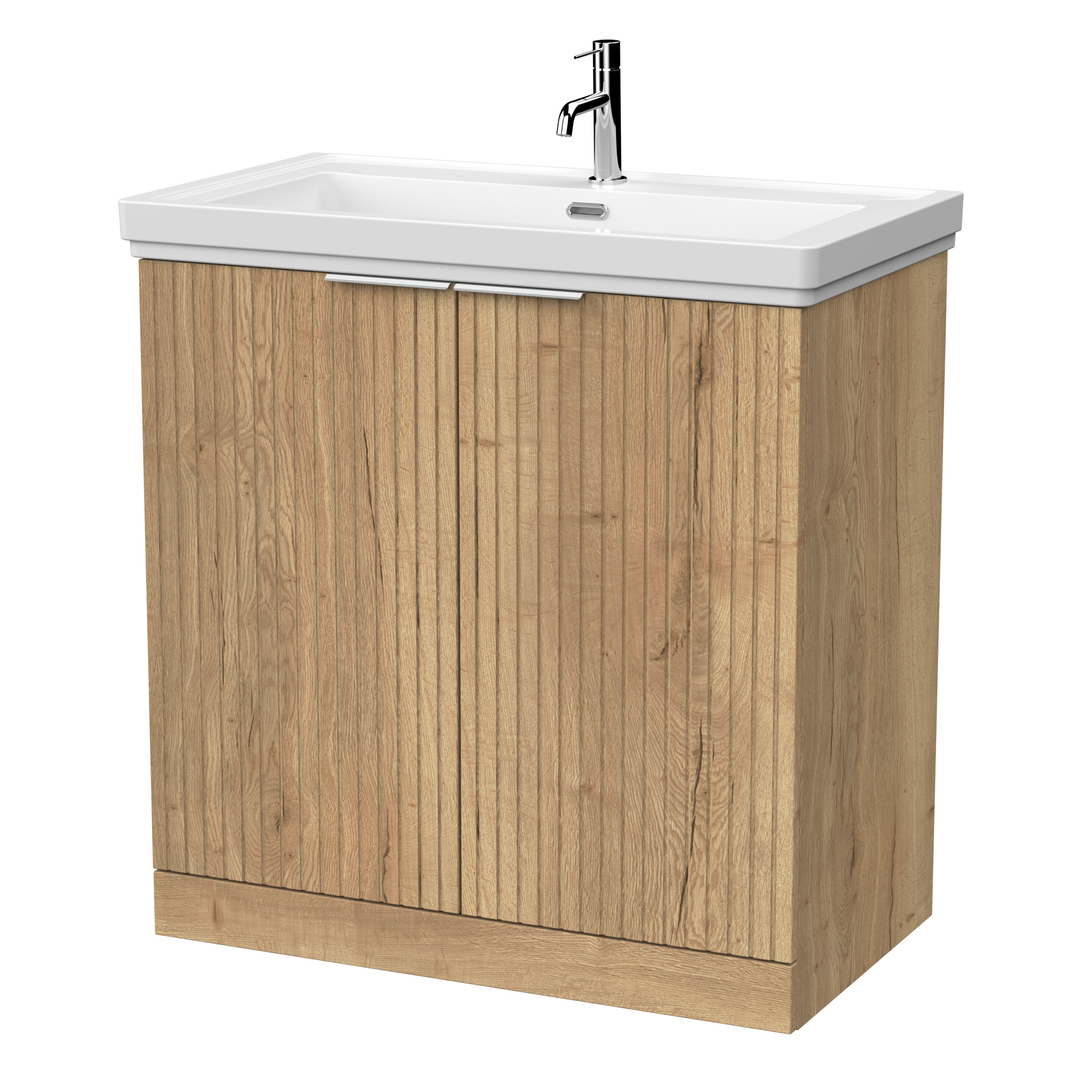 nuie Lux Flume 800mm 2-Door Floor Standing Unit with Traditional Fireclay Basin - 1 Tap Hole - Autumn Oak