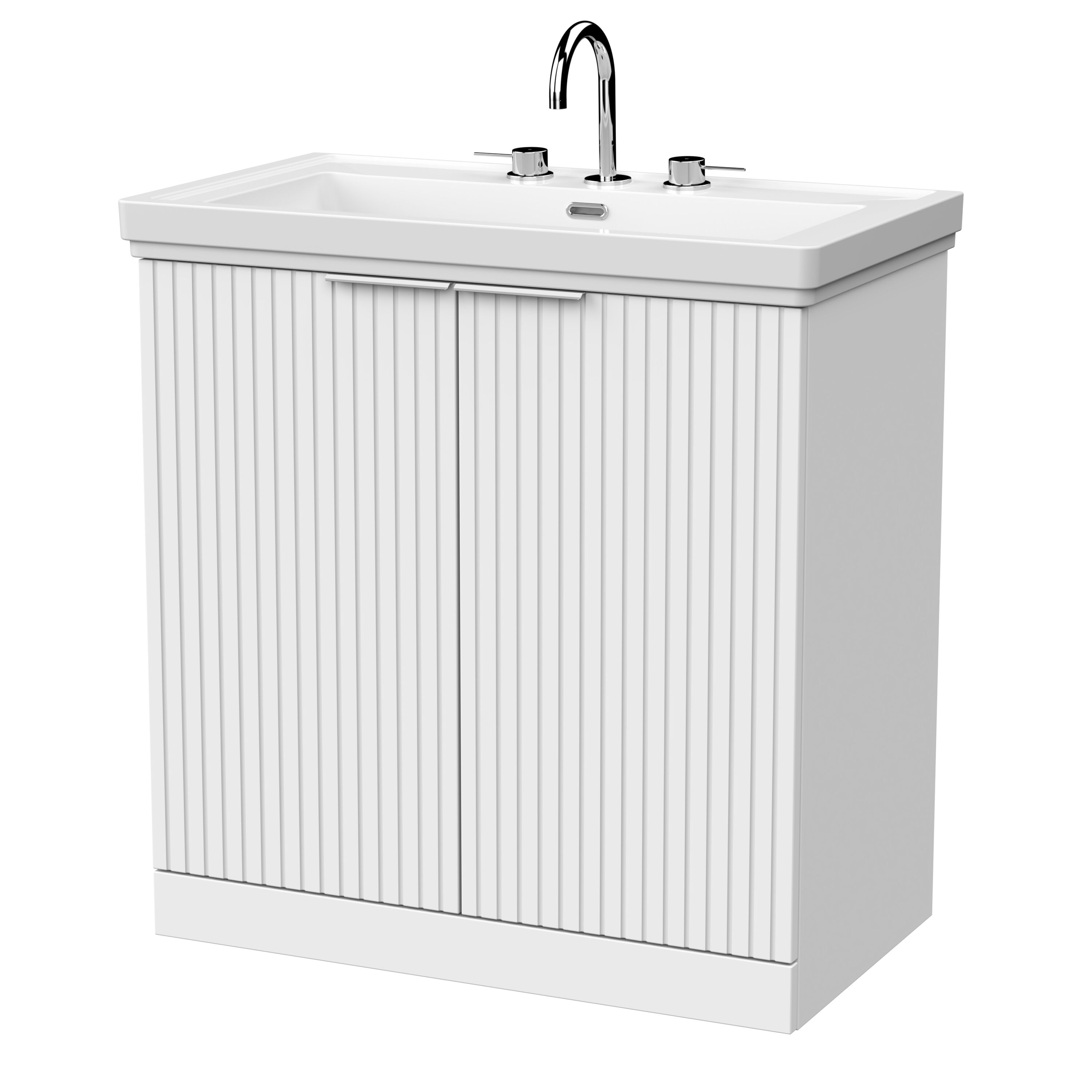 nuie Lux Flume 800mm 2-Door Floor Standing Unit with Traditional Fireclay Basin - 3 Tap Holes - Matt White