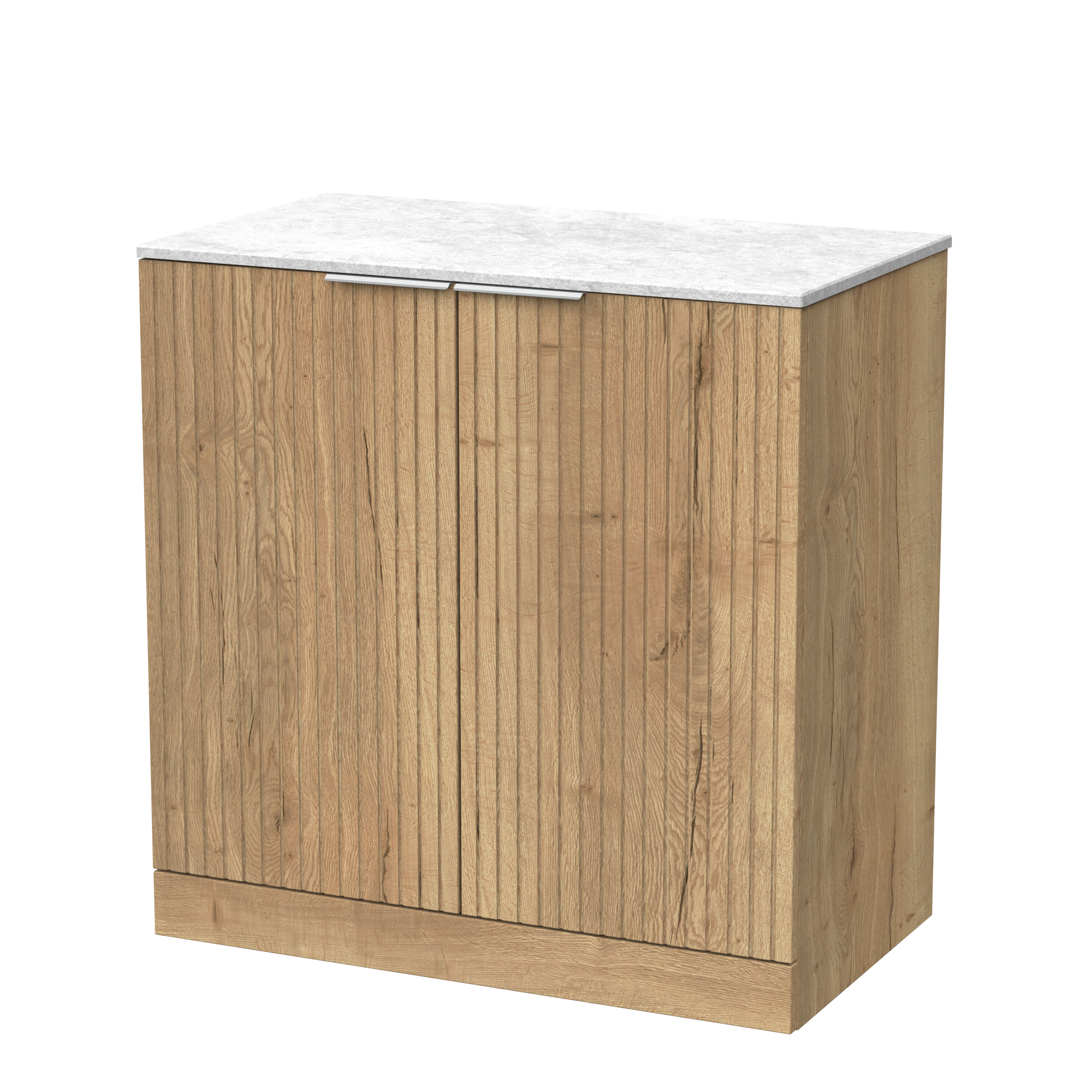 nuie Lux Flume 800mm 2-Door Floor Standing Unit with White Marble Top - Autumn Oak