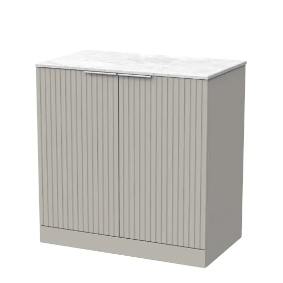 nuie Lux Flume 800mm 2-Door Floor Standing Unit with White Marble Top - Pebble Grey