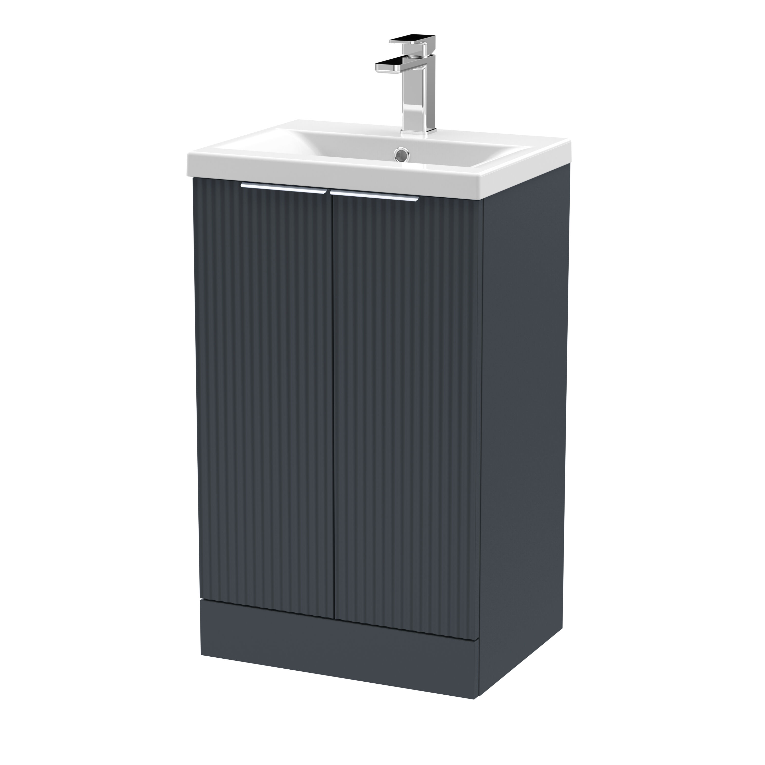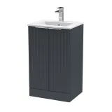 Hudson Reed Fluted 500mm Floor Standing 2-Door Vanity Unit Including Basin
