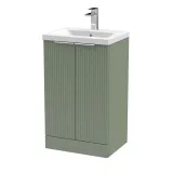 Hudson Reed Fluted 500mm Satin Green Floor Standing 2-Door Vanity Unit With Basin
