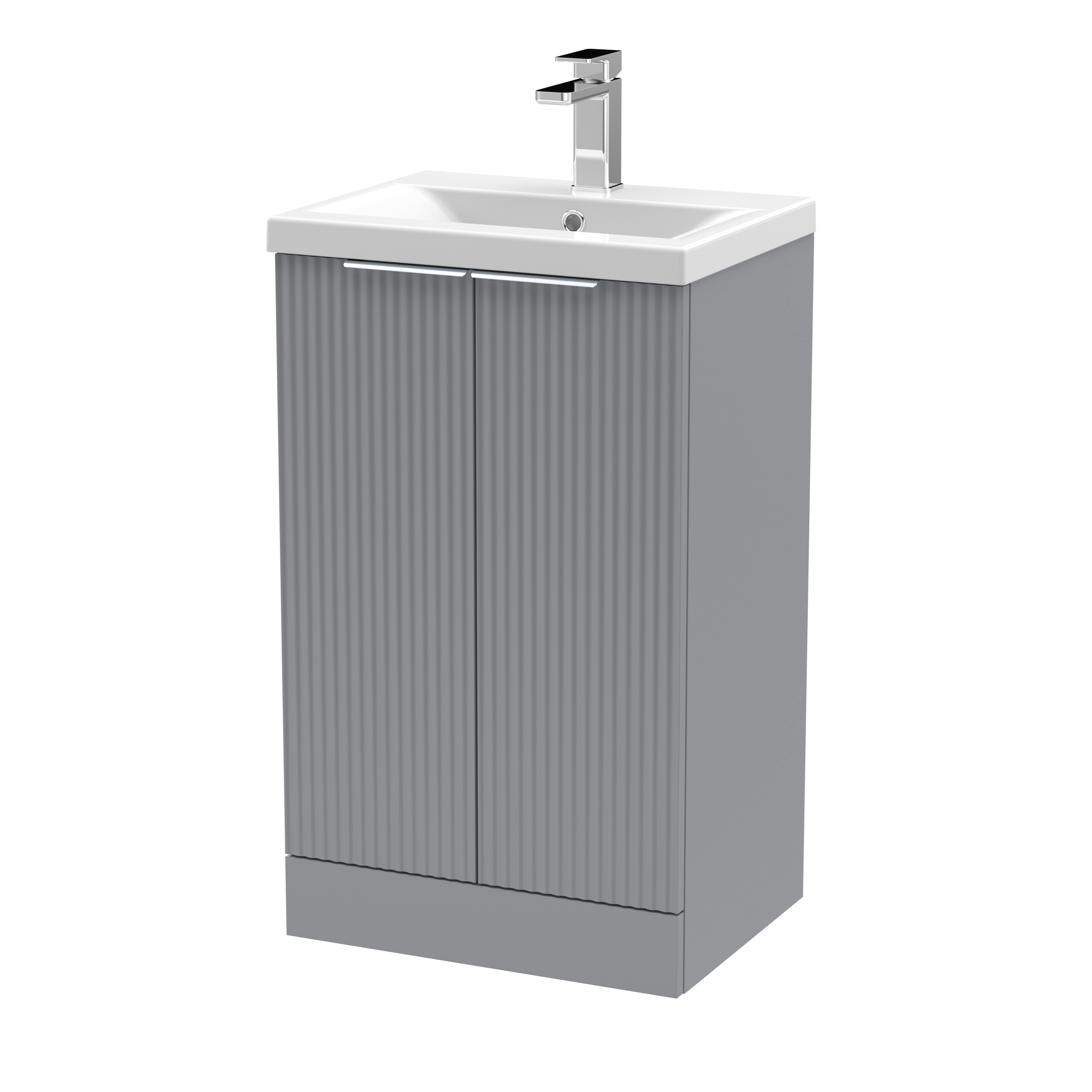 Hudson Reed Fluted 500mm Floor Standing 2-Door Vanity and Mid-Edge Basin - Satin Grey