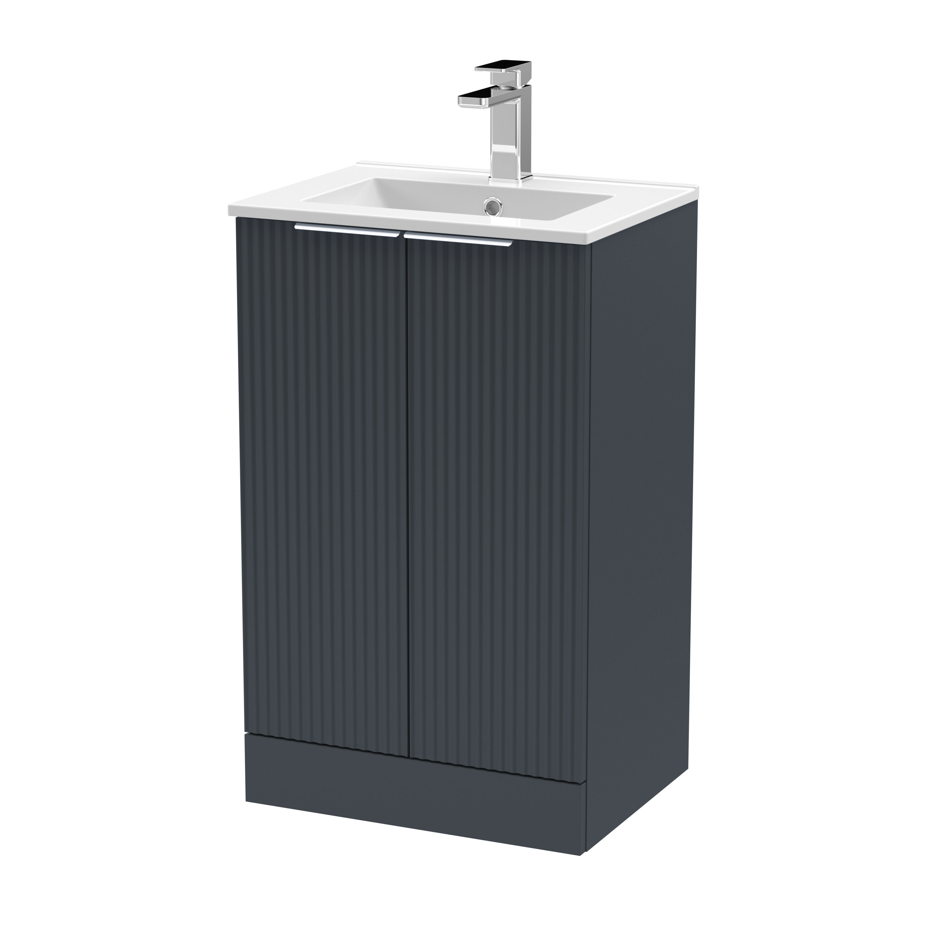 Hudson Reed Fluted 500mm Floor Standing 2-Door Vanity and Minimalist Basin - Soft Black