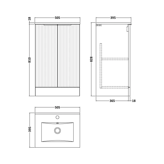 Hudson Reed Fluted 500mm Floor Standing 2-Door Vanity and Minimalist Basin - Satin Blue