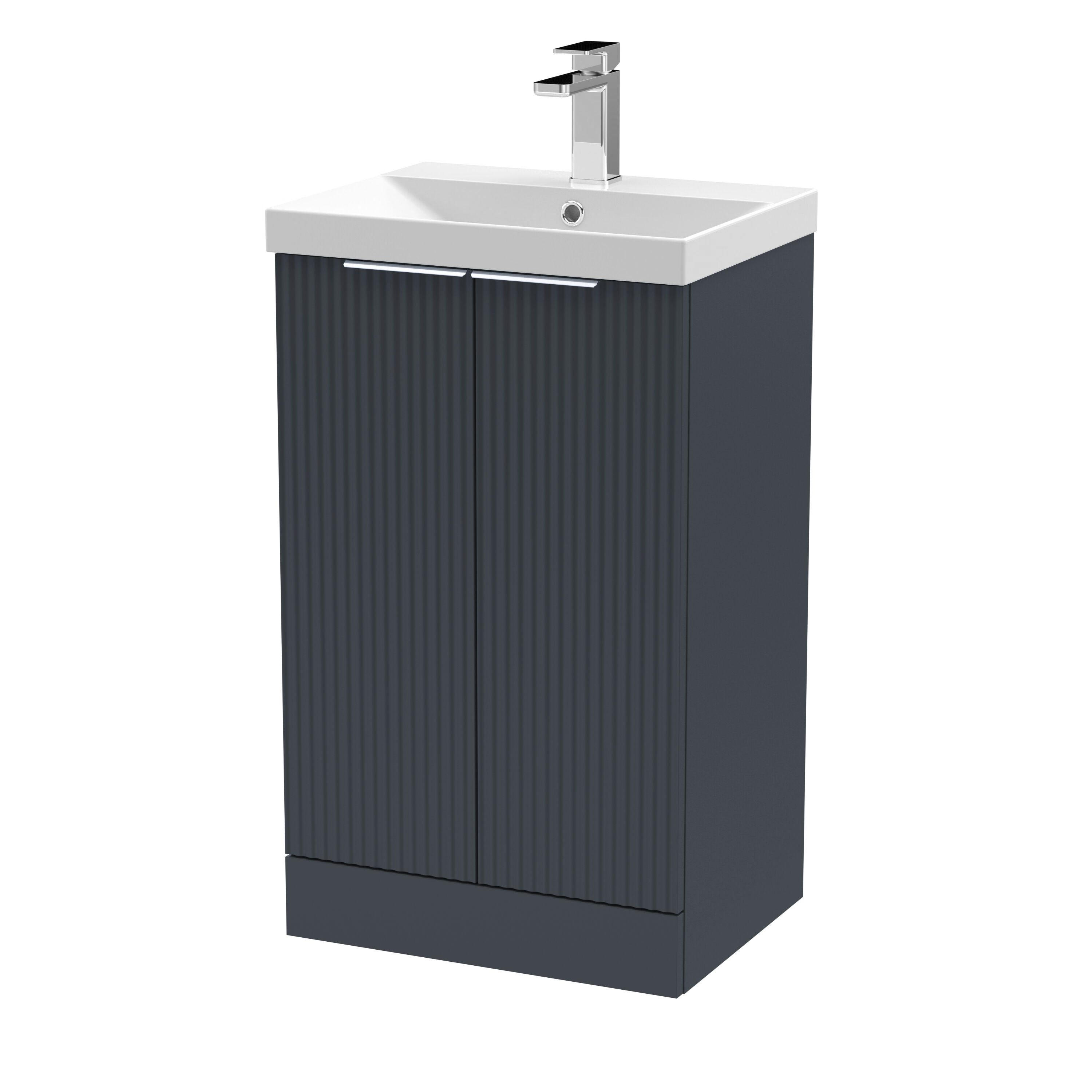 Hudson Reed Fluted 500mm Floor Standing 2-Door Vanity and Thin-Edge Basin - Soft Black