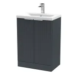 Hudson Reed Fluted 600mm Floor Standing 2-Door Vanity Unit With Basin