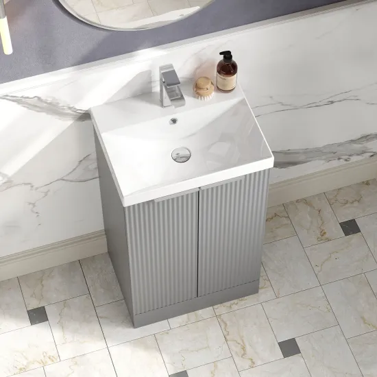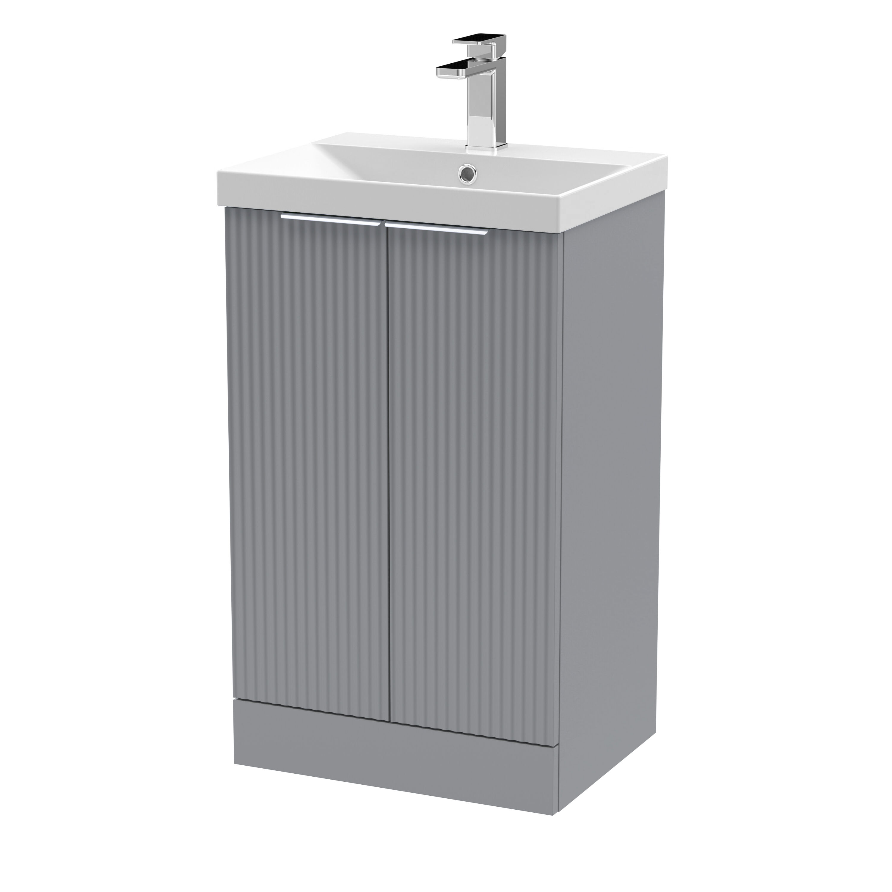 Hudson Reed Fluted 500mm Floor Standing 2-Door Vanity and Thin-Edge Basin - Satin Grey
