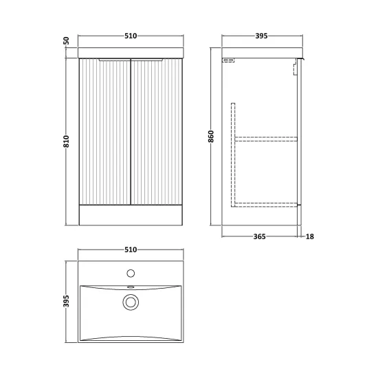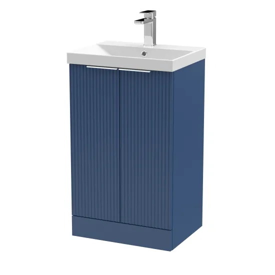 Hudson Reed Fluted 500mm Floor Standing 2-Door Vanity and Thin-Edge Basin - Satin Blue