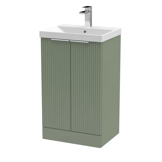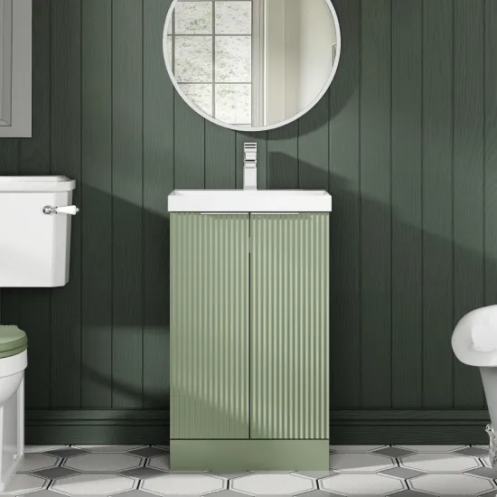 Hudson Reed Fluted 500mm Floor Standing 2-Door Vanity and Thin-Edge Basin - Satin Green