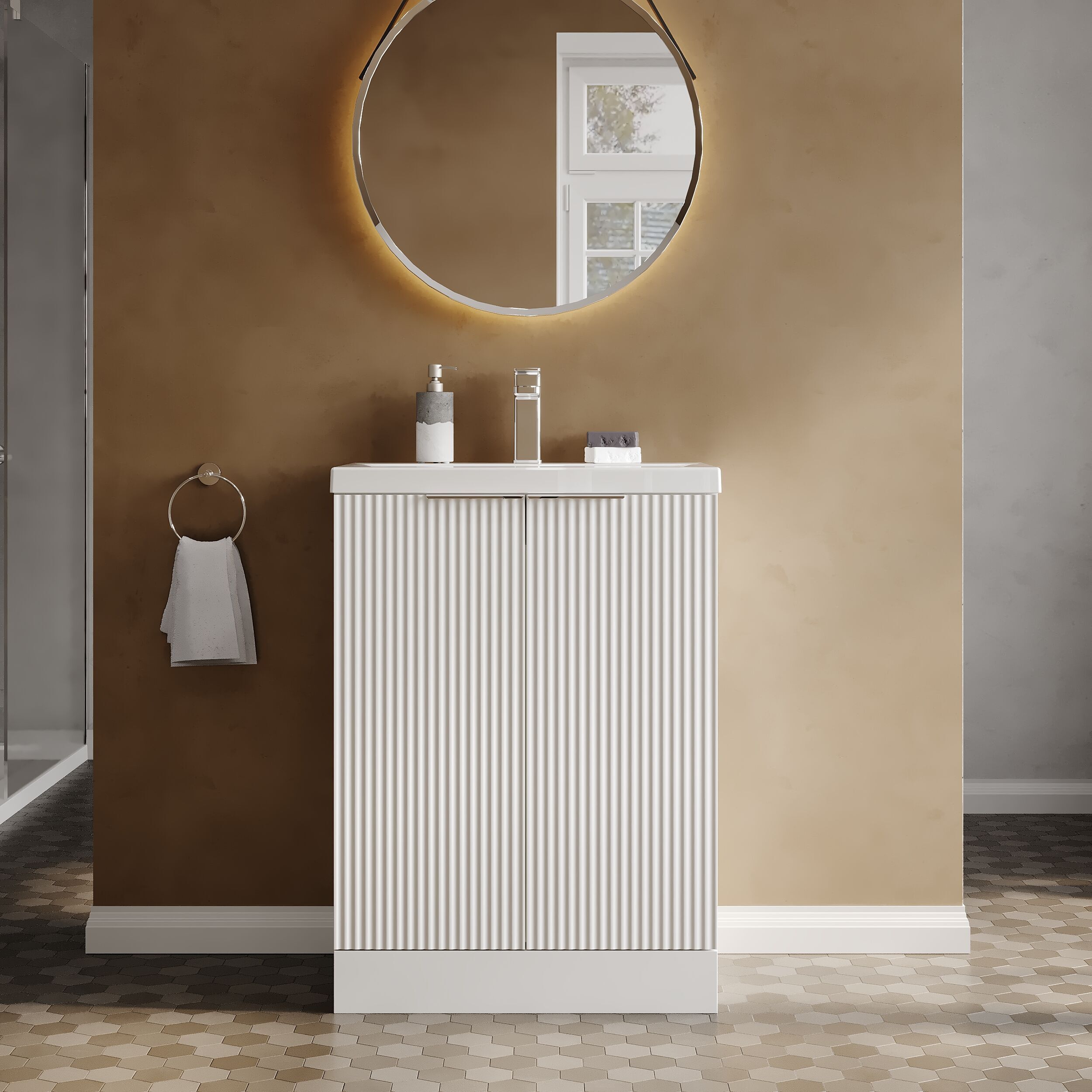 Hudson Reed Fluted 600mm Satin White Floor Standing 2-Door Vanity Unit With Basin