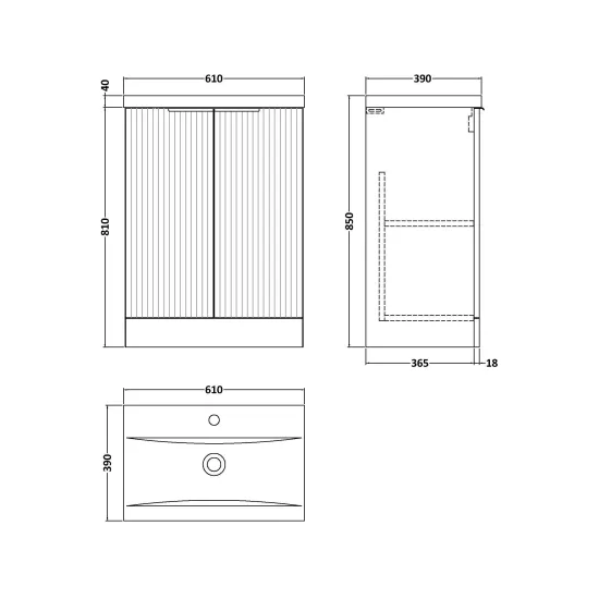 Hudson Reed Fluted 600mm Floor Standing 2-Door Vanity and Mid-Edge Basin - Satin White