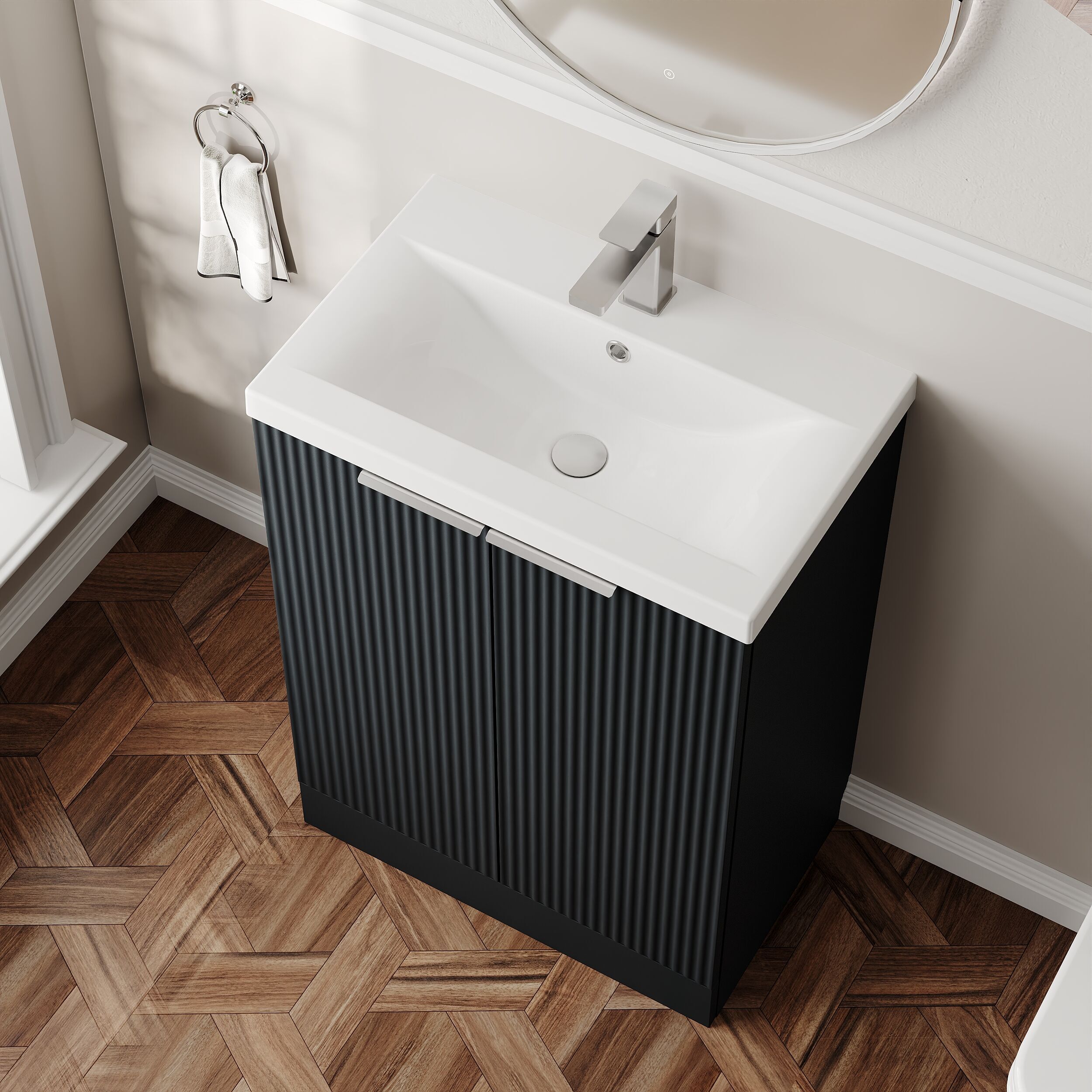 Hudson Reed Fluted 600mm Floor Standing 2-Door Vanity and Mid-Edge Basin - Soft Black