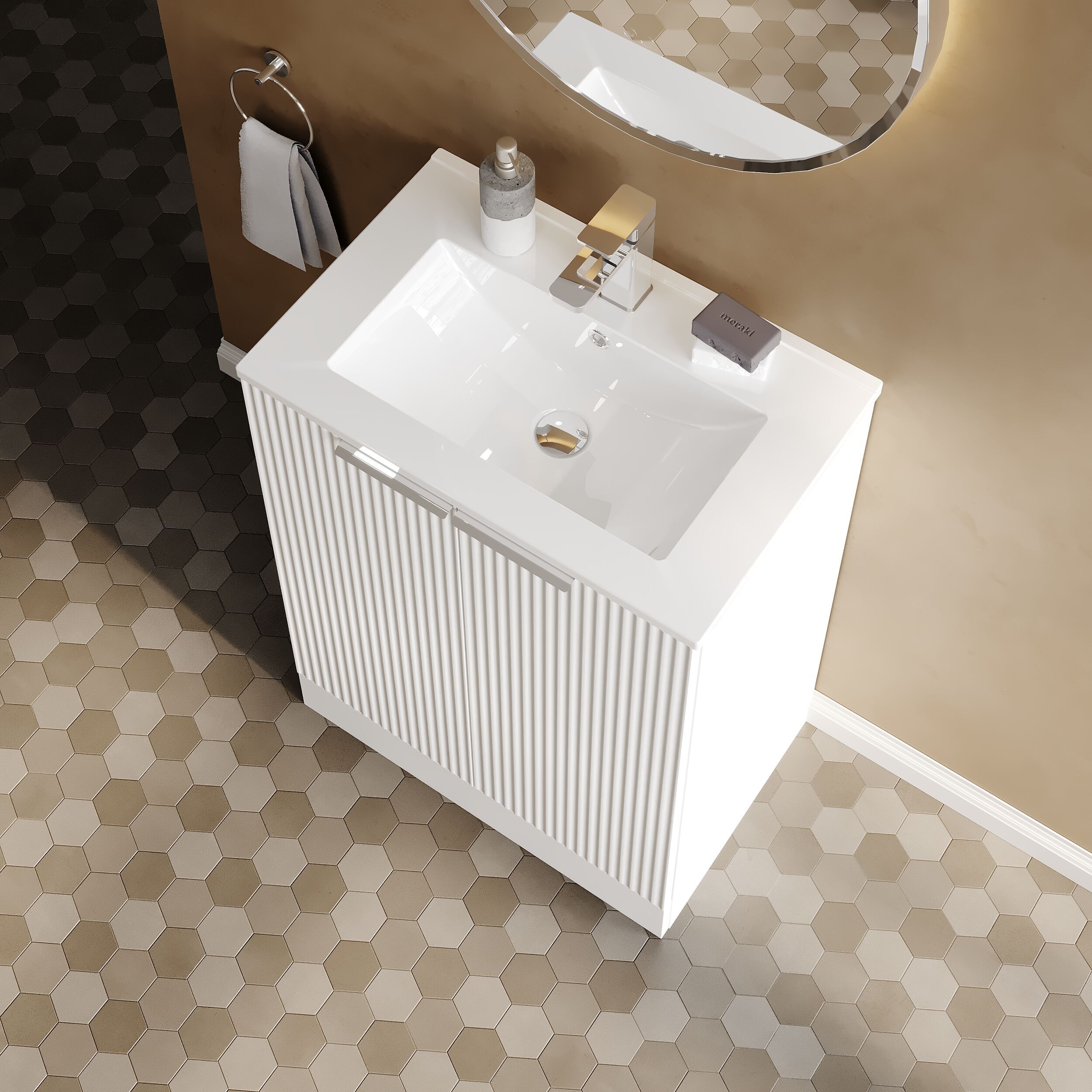 Hudson Reed Fluted 600mm Floor Standing 2-Door Vanity and Minimalist Basin - Satin White