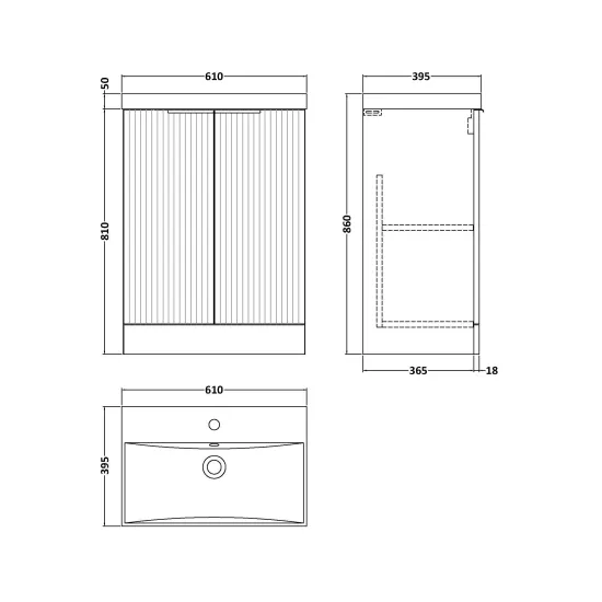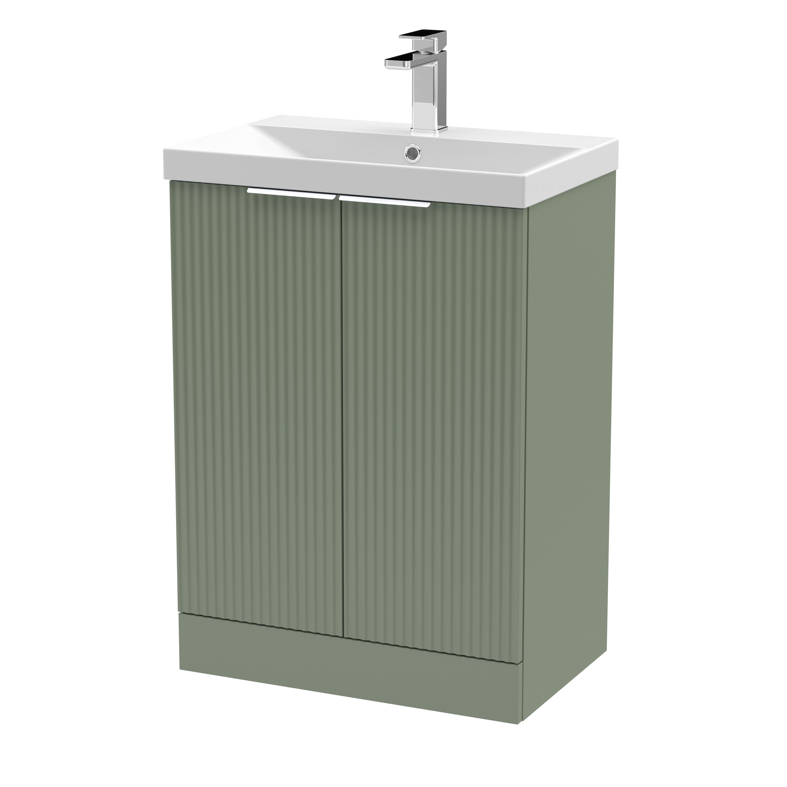Hudson Reed Fluted 600mm Floor Standing 2-Door Vanity and Thin-Edge Basin - Satin Green