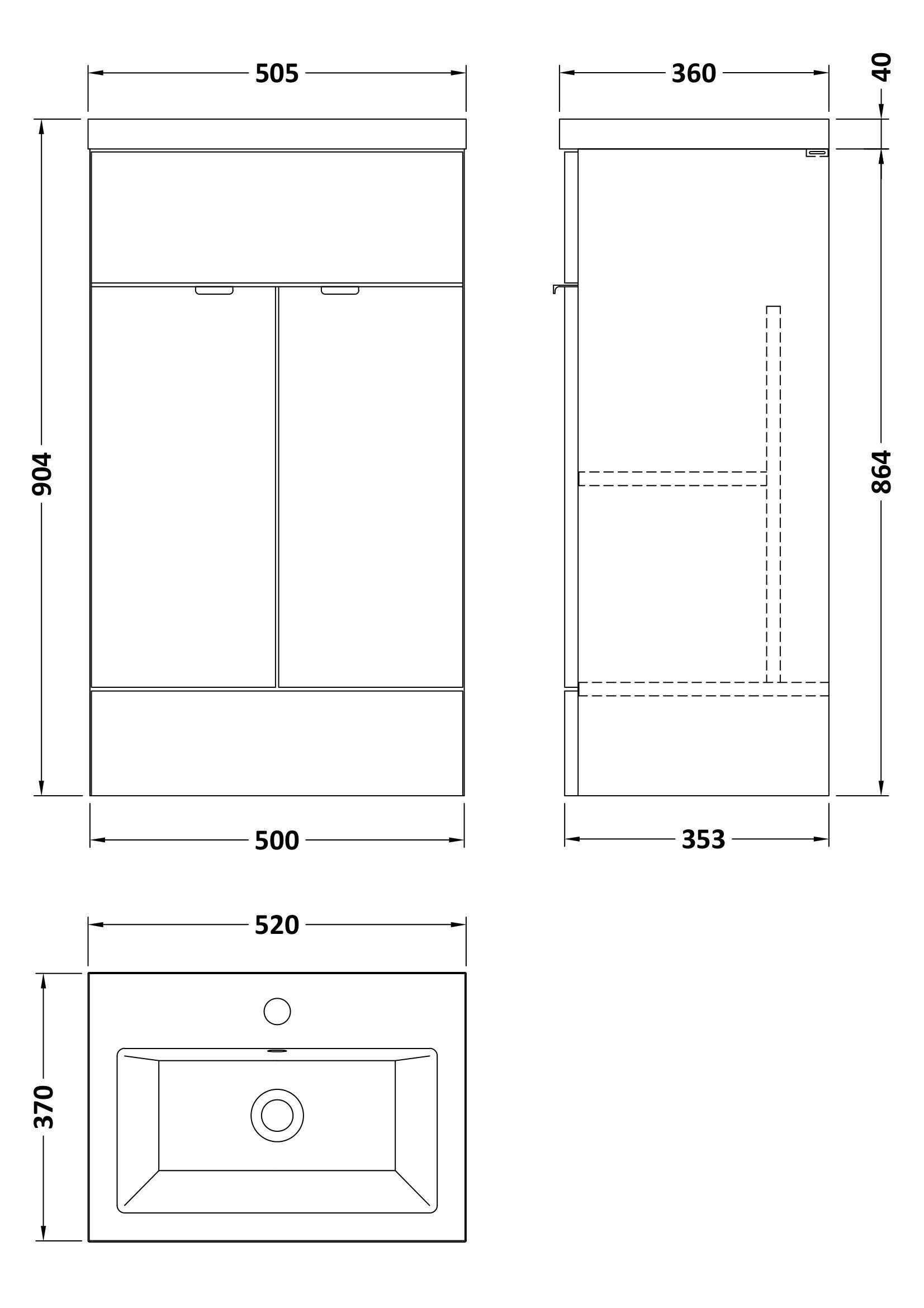 Hudson Reed Fusion 505mm Floor Standing 2 Door Vanity Unit With Ceramic Basin