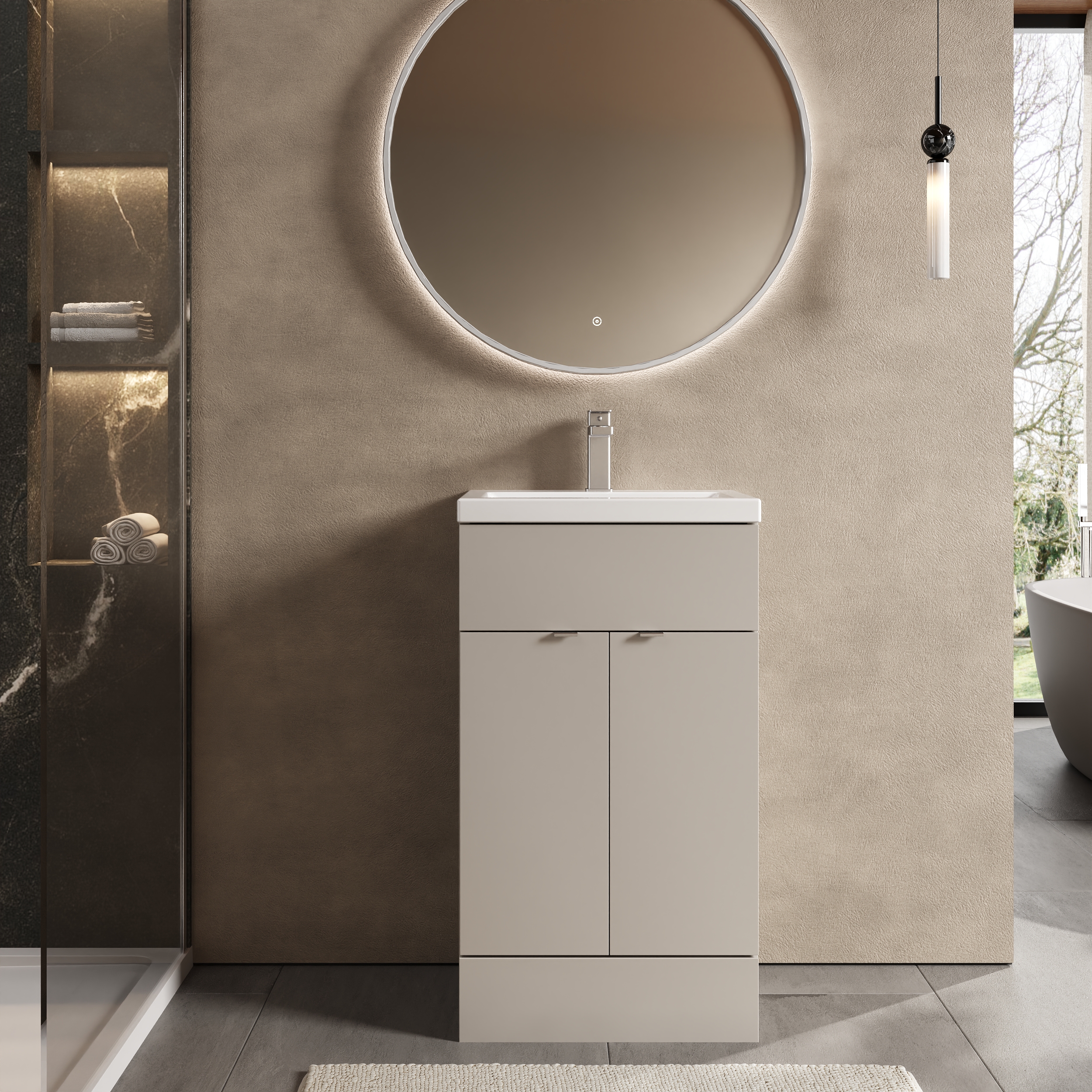 Hudson Reed Fusion 500mm Pebble Grey Vanity Unit & Basin With Handles