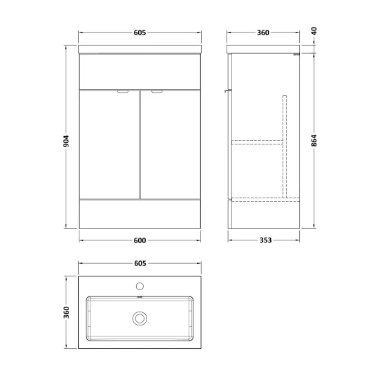 Hudson Reed Fusion 600mm Floor Standing 2 Door Vanity Unit & Polymarble Basin With Handles