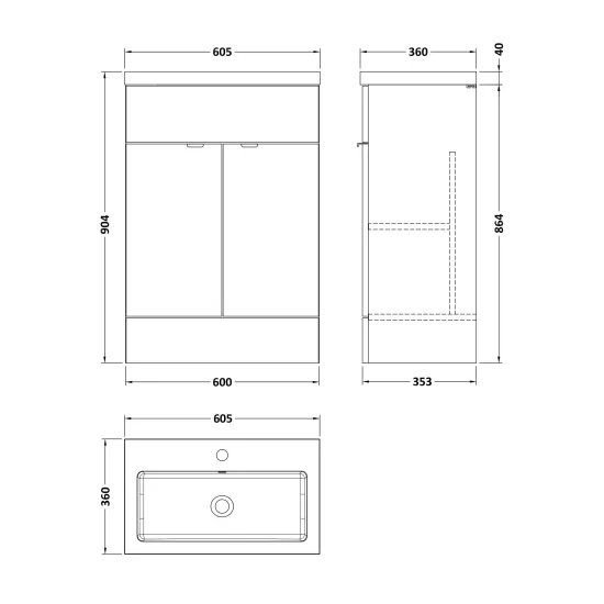 Hudson Reed Fusion 600mm Vanity Unit & Basin - Pebble grey