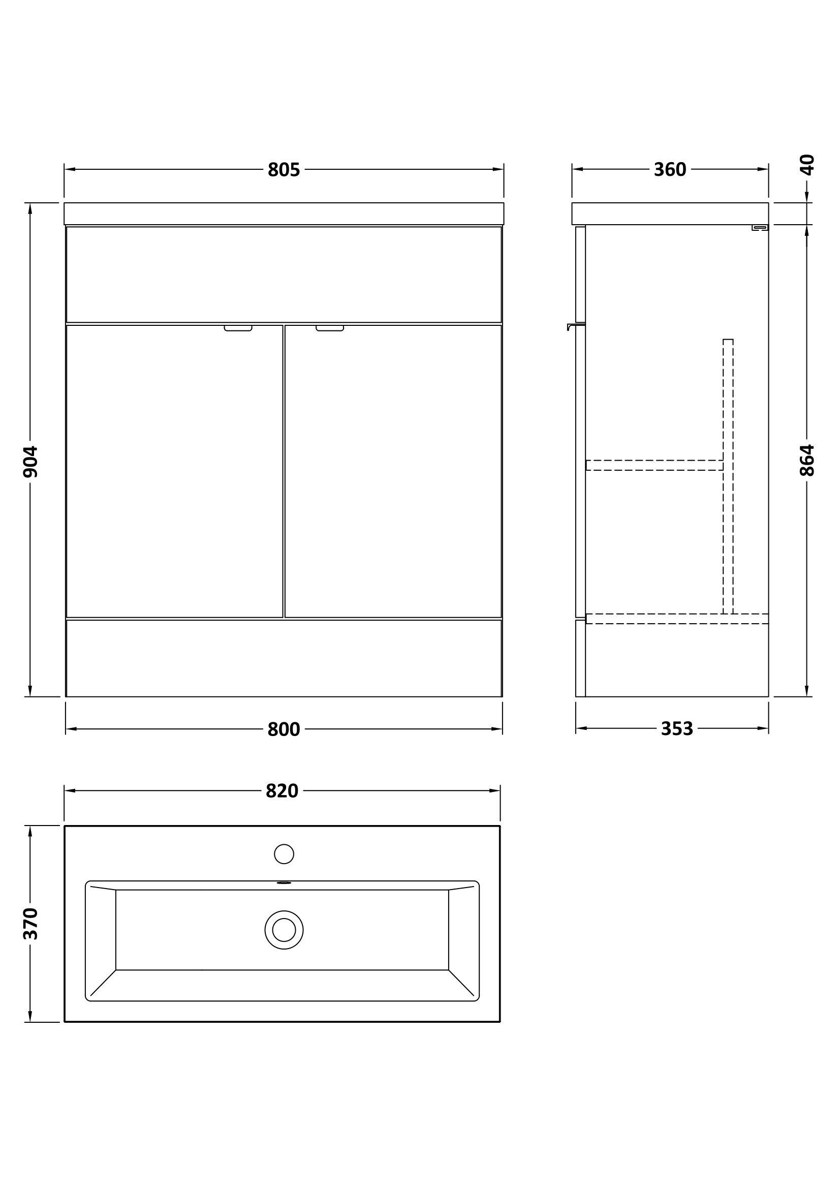 Hudson Reed Fusion 800mm Floor Standing 2 Door Vanity Unit With Ceramic Basin