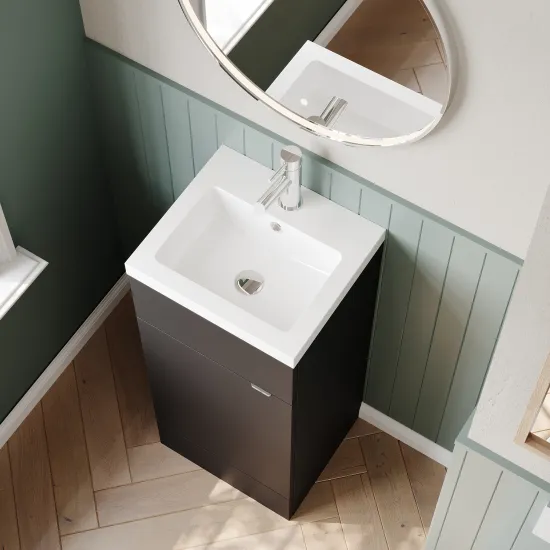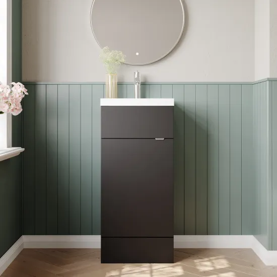 Hudson Reed Fusion 400mm Anthracite Woodgrain Floor Standing 1 Door Vanity Unit & Basin