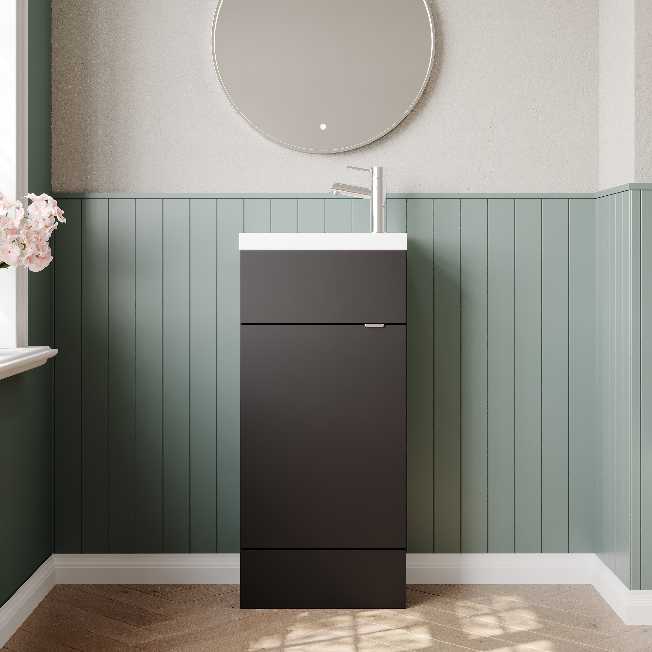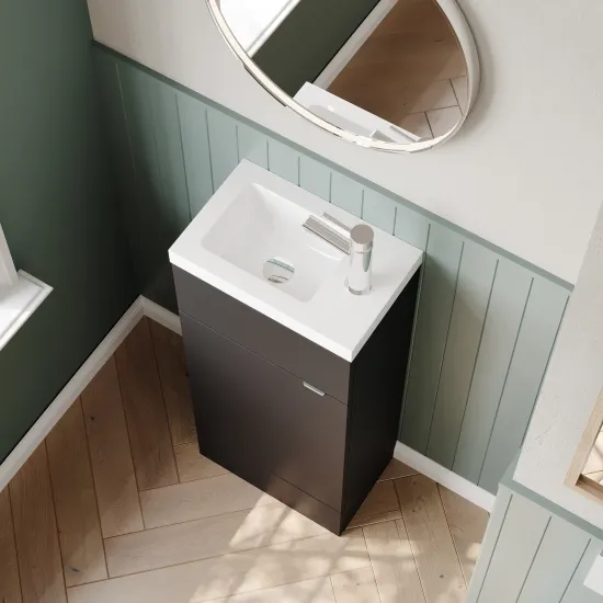 Hudson Reed Fusion 400mm Anthracite Woodgrain Floor Standing 1 Door Vanity Unit & Basin With Handle