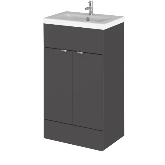 Hudson Reed Fusion 500mm Gloss Grey Floor Standing 2 Door Vanity Unit & Ceramic Basin