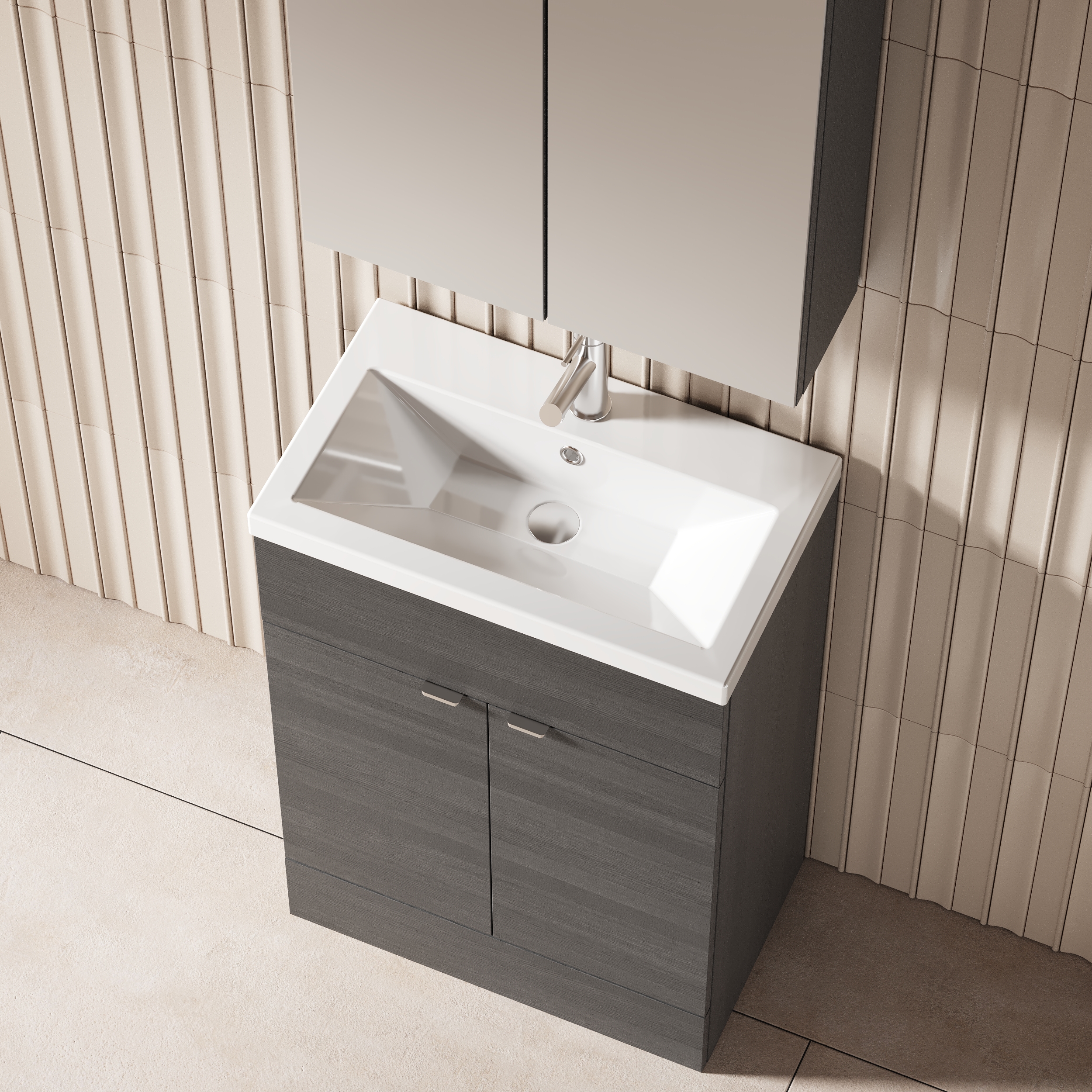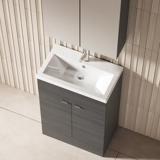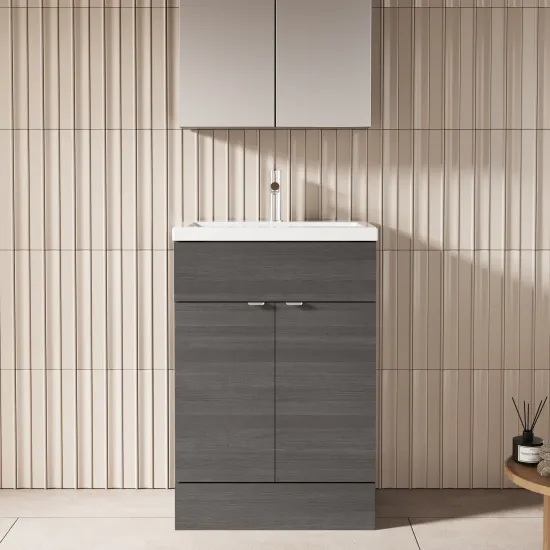 Hudson Reed Fusion Floor Standing 2 Door Vanity Unit & Ceramic Basin 600mm - Anthracite Woodgrain