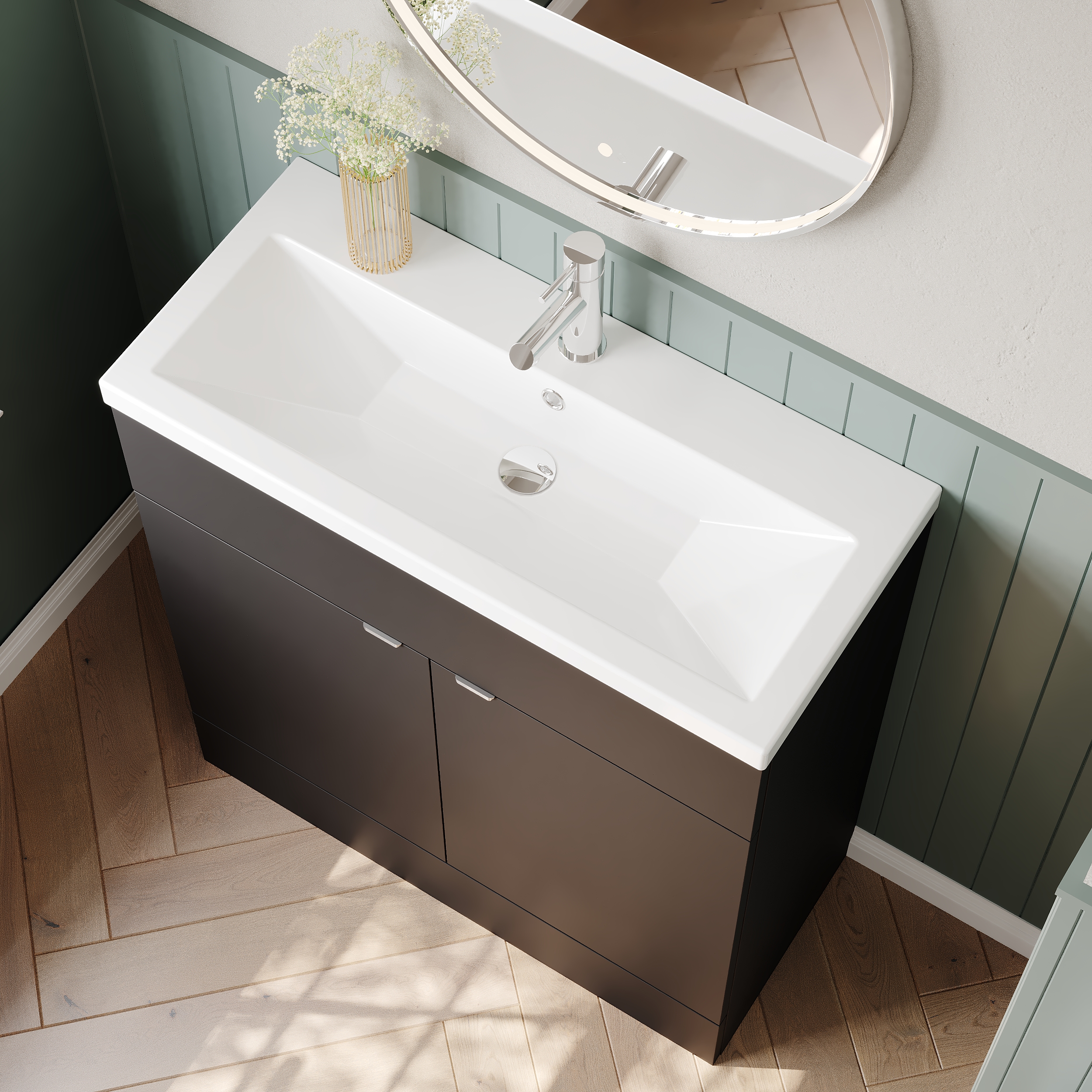 Hudson Reed Fusion 800mm Anthracite Woodgrain Floor Standing 2 Door Vanity Unit & Polymarble Basin