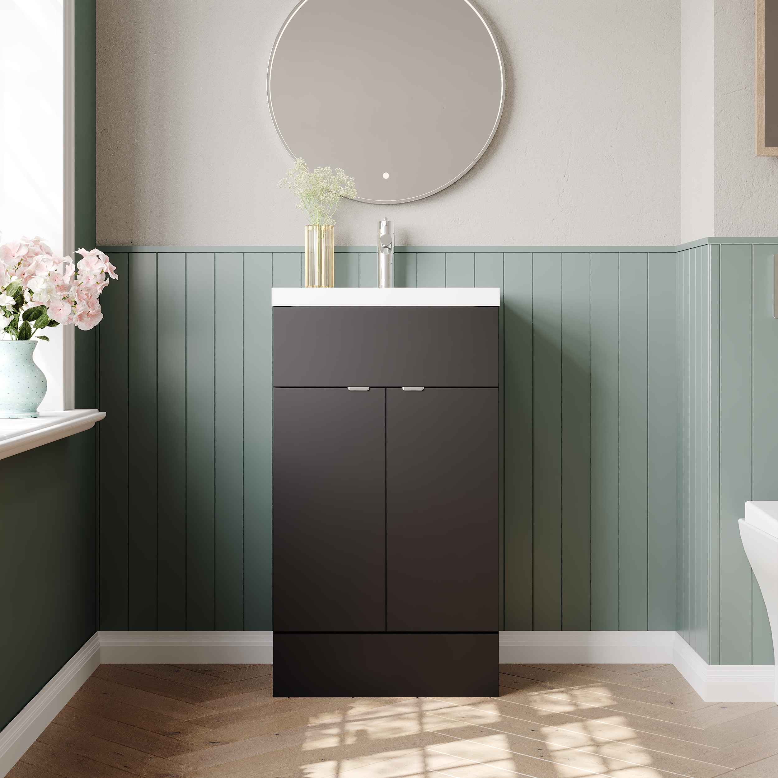 Hudson Reed Fusion 500mm Anthracite Woodgrain Floor Standing 2 Door Vanity Unit with Polymarble Basin